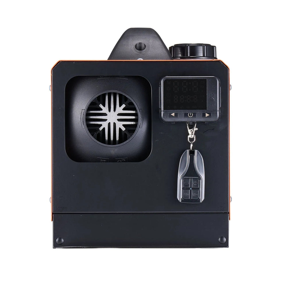 The VEVOR 8 kW Diesel Air Heater is a fast-heating, portable parking heater designed for RVs, trucks, campers, boats, and trailers. Operating on DC 12–24V, it efficiently heats areas of 161–215 FT² with a ceramic igniter for quick starts even in cold weather. The heater features enhanced safety measures including a heat-insulated exhaust pipe shield, leak-proof fuel cap, and fuel gauge for safe and reliable use. With a precision low-noise fuel pump and a 5L (1.3 Gal) fuel tank, it provides all-night warmth while maintaining ≥90% combustion efficiency. Dual control options include a 98 ft remote and an LCD screen, allowing temperature adjustment from 32–104℉ (0–40℃). Compact and easy to install, this diesel heater works effectively at altitudes below 9843 ft, ensuring continuous comfort in cold or high-altitude environments.