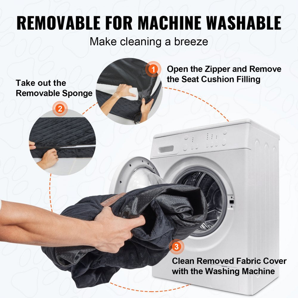 The VEVOR Dog Booster Car Seat is designed to provide comfort, security, and style for medium to large dogs weighing up to 55 lbs. Featuring a premium build with ultrasonic quilted crystal velvet and soft sponge padding, this black car seat creates a cozy and protective space for your pet during travel. The high backrest and spacious design offer enhanced support and relaxation, while the quick-install straps allow for fast setup in any standard vehicle seat. Perfect for long road trips or daily drives, this booster seat helps keep your dog comfortable and restrained.