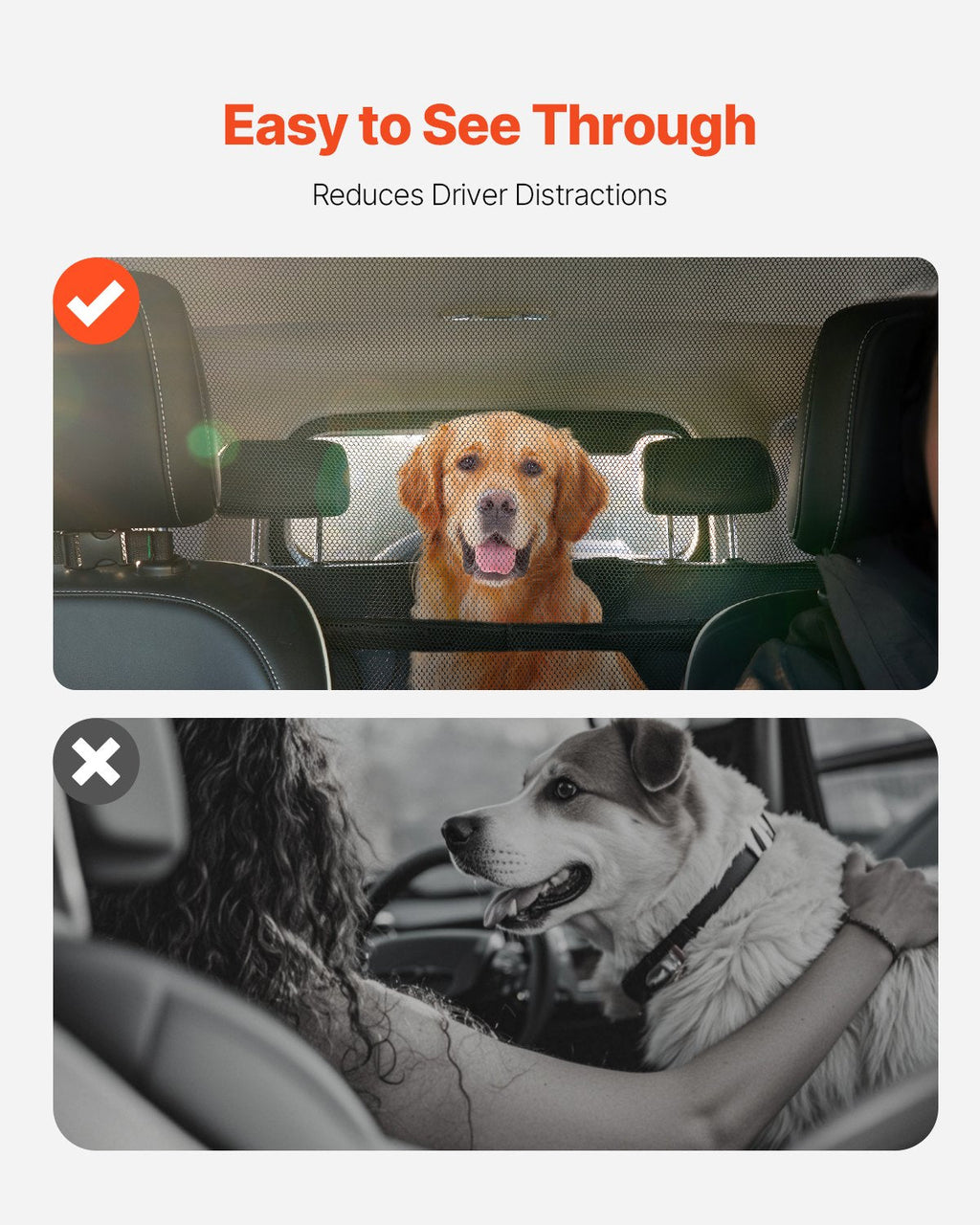Rear Seat Visibility: Keeps the rear view clear for safe driving while your pet is safely contained.