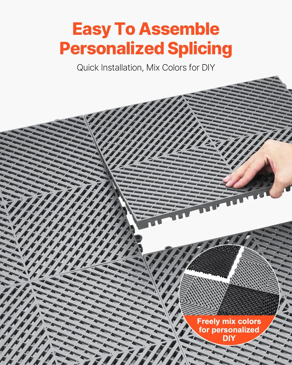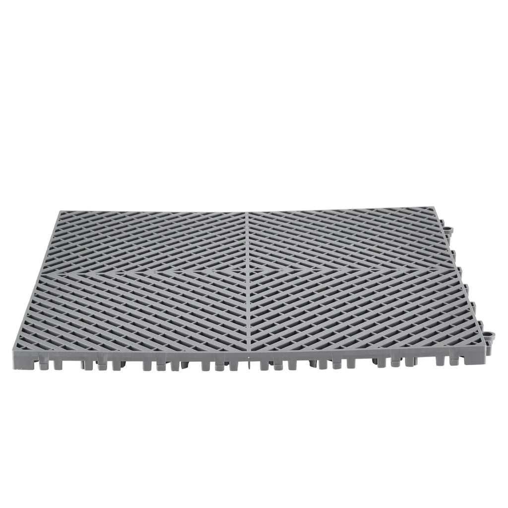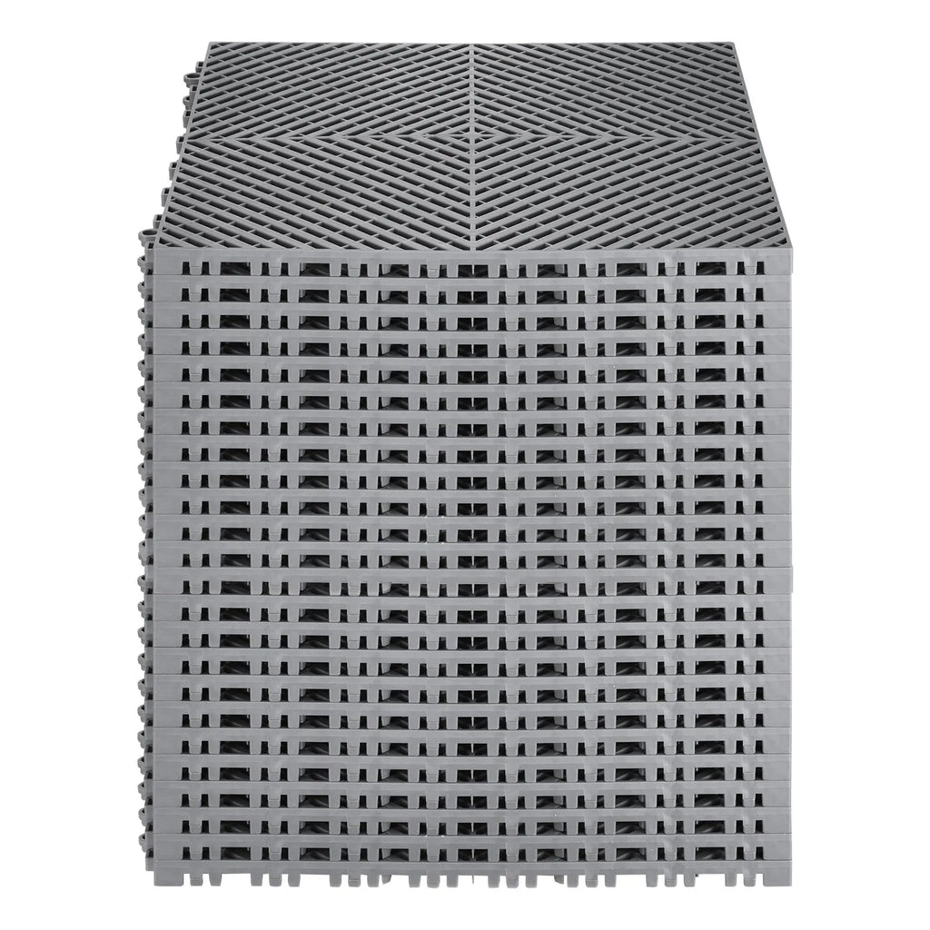 The VEVOR Drainage Floor Mat 15.7" x 15.7" Modular Interlocking Mat set offers a durable and reliable flooring solution for wet and high-traffic environments. Made from tough PP material with extra thickness for enhanced strength, these tiles allow efficient water drainage while providing a cushioned and slip-resistant surface. The modular snap-together design allows quick installation and flexible layout options to fit various spaces. Ideal for kitchens, garages, workshops, gyms, and commercial areas, this 24-piece set helps maintain clean, dry, and safe flooring while ensuring long-lasting performance.