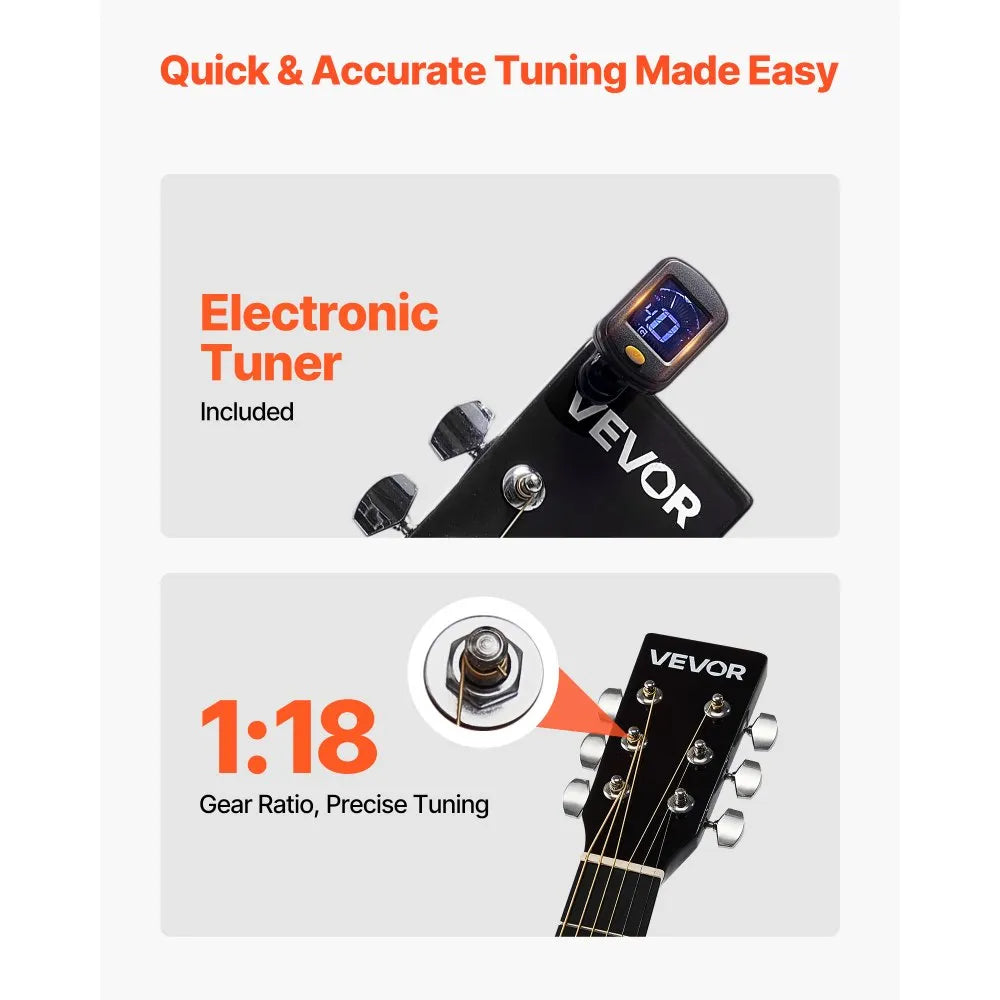 Start your musical journey with the VEVOR 39 in Dreadnought Acoustic Guitar, crafted for beginners and adult players seeking quality sound and comfort. Featuring a solid spruce top, basswood back, and rosewood fingerboard, this guitar delivers rich, warm tones for a variety of musical styles. The portable bundle includes all essential accessories, making it perfect for practice, performance, or travel.