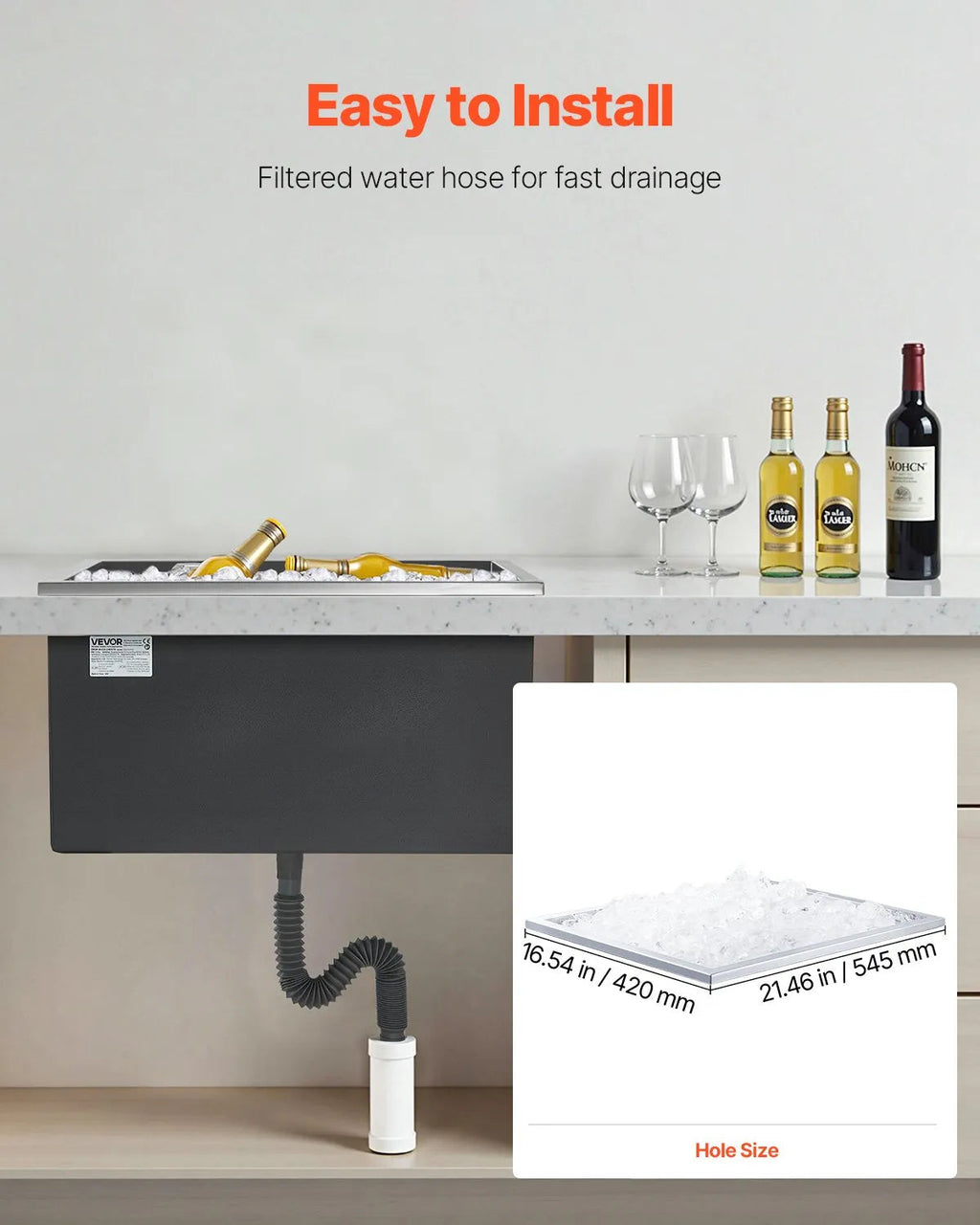 Keep your drinks, ice, and fresh ingredients perfectly chilled with the VEVOR Drop-In Ice Chest. Built with premium stainless steel and a triple-layer insulated structure, this 45.3QT commercial ice bin delivers long-lasting cooling performance—ideal for outdoor kitchens, patio bars, restaurants, and beverage counters.