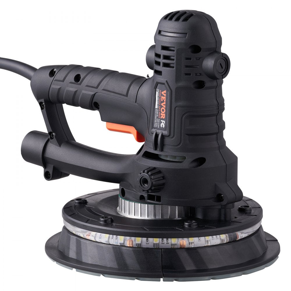 Tackle drywall sanding with ease using the VEVOR 800W Electric Drywall Sander. Featuring a powerful brush motor with variable speed control from 1200 to 2300 RPM, this sander adapts to your sanding needs for smooth, professional results. Equipped with a double-layer LED strip light and dual LED lights, it ensures clear visibility in any workspace. The built-in automatic vacuum dust collection system helps keep your area clean, and it’s compatible with an external dust extractor for enhanced dust control. The detachable edge design and included 12 sanding discs provide versatility and convenience for detailed work.