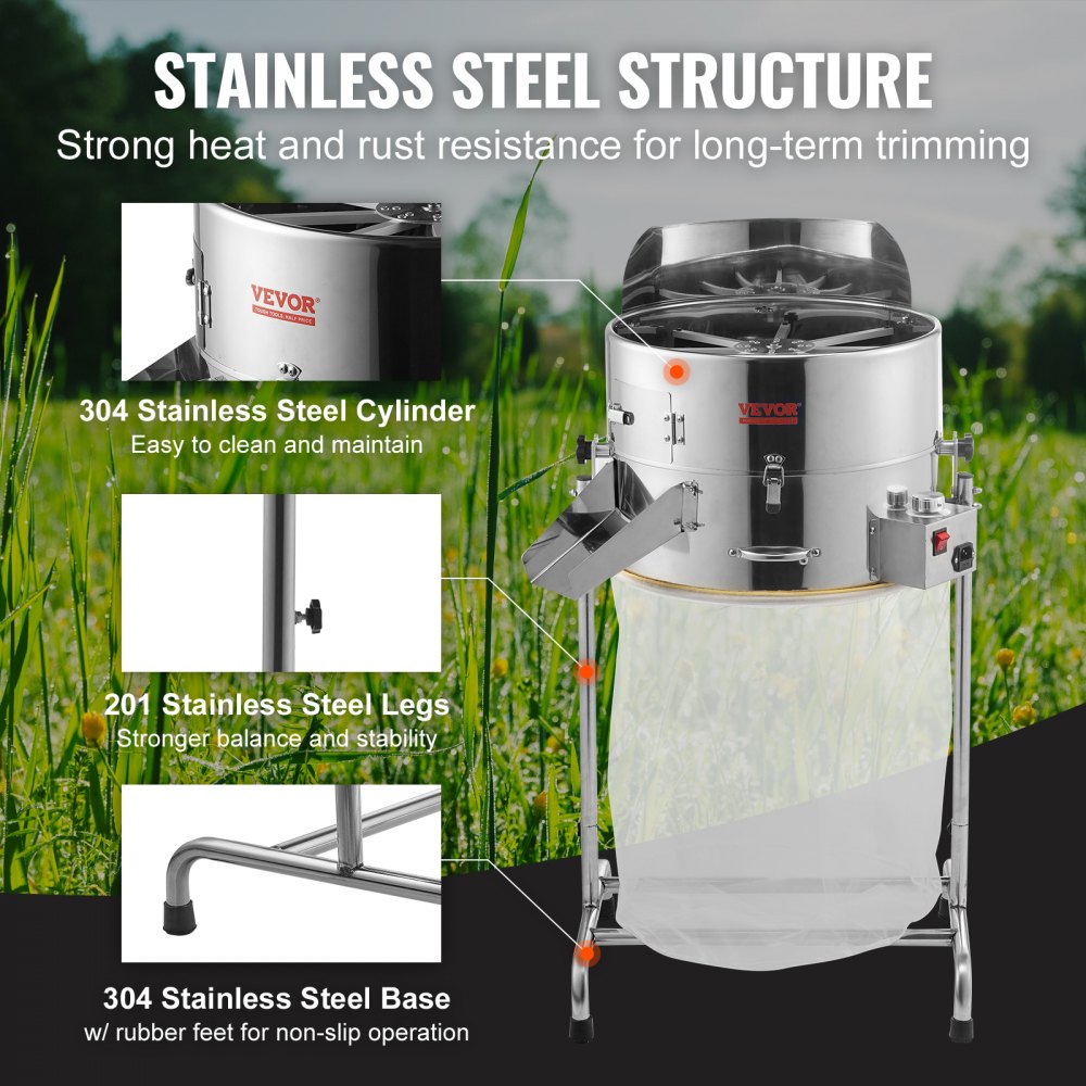 Experience efficient trimming with the VEVOR Electric Bud Trimmer, designed for effortless leaf and bud trimming. Equipped with powerful 60W motor and adjustable speed of 1080 RPM, this trimmer ensures precise and smooth operation. Crafted with durable stainless steel blades and construction, it offers long-lasting performance and easy maintenance. The included mesh bag simplifies collection, keeping your workspace clean, while the hand pruner provides added convenience. Its versatile design suits various trimming needs, making it perfect for both hobbyists and professionals.