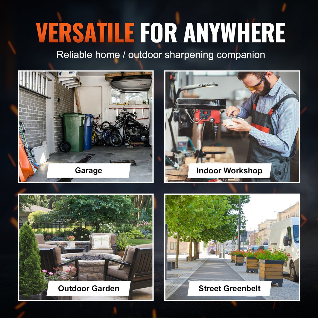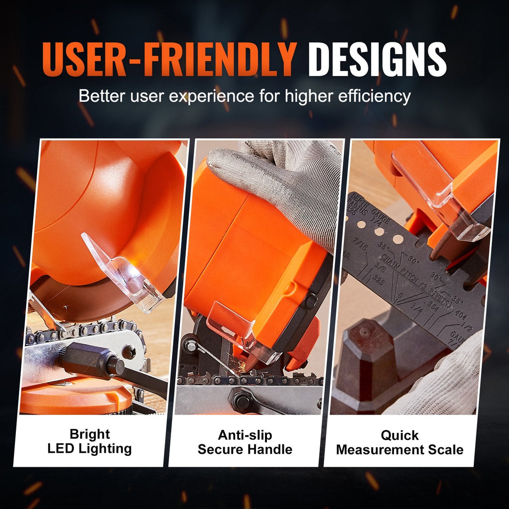 Keep your chainsaw blades razor-sharp with the powerful and precise VEVOR Electric Chainsaw Sharpener. Designed for professional and DIY users, this bench tool features three grinding wheels for versatile sharpening across a wide range of chain pitches.