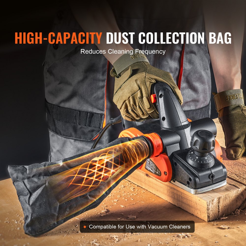 The VEVOR Electric Hand Planer is a powerful and precise woodworking tool designed for smooth, efficient planing and chamfering. Equipped with a high-speed 16,500 RPM motor, this planer easily handles wood surfaces, delivering clean, professional finishes for your carpentry and DIY projects. Its dual dust extraction system keeps your workspace clean, while the ergonomic design ensures comfortable and portable operation. Durable construction and sharp blades provide reliable performance for a variety of woodworking tasks.