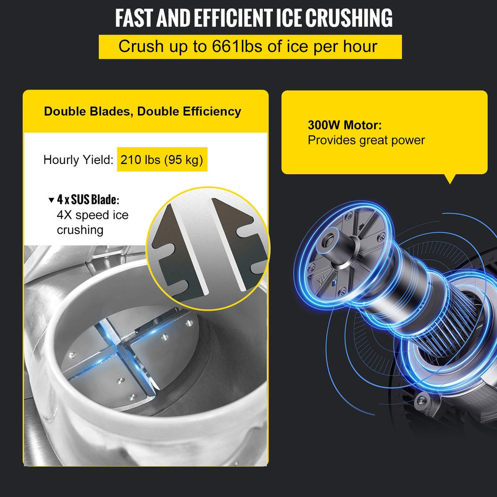 Efficient Dual Blades: Equipped with two stainless steel blades for faster, more effective ice crushing
