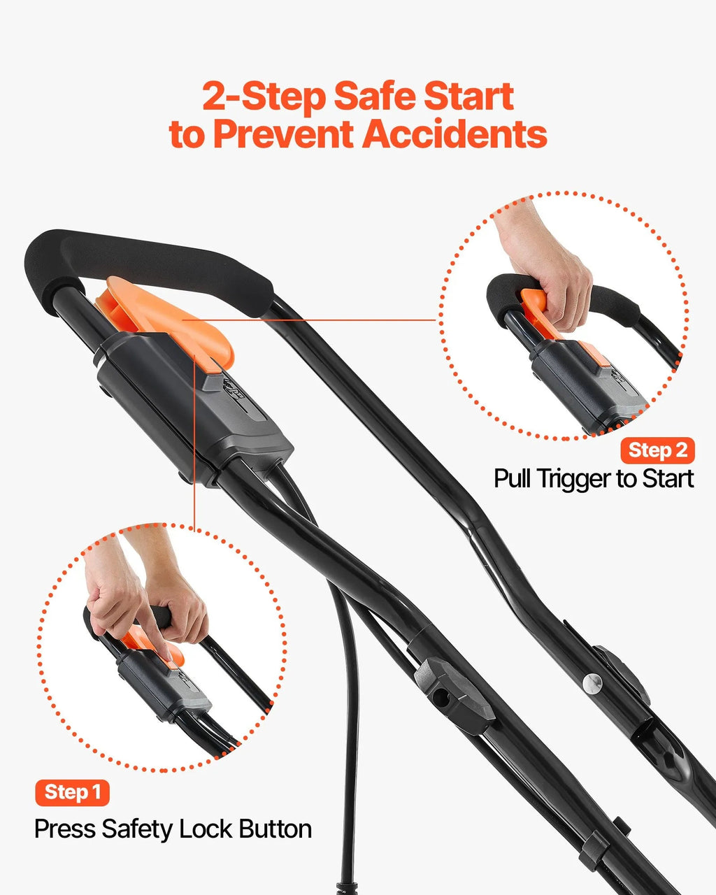 Clear snow effortlessly with the VEVOR Electric Snow Shovel. Powered by a robust 12A, 1500W motor, this 17-inch corded snow shovel makes light work of sidewalks, driveways, patios, and small yards. Its compact, lightweight design, adjustable chute, and dual safety switches provide safe, efficient, and precise snow removal, perfect for winter weather.
