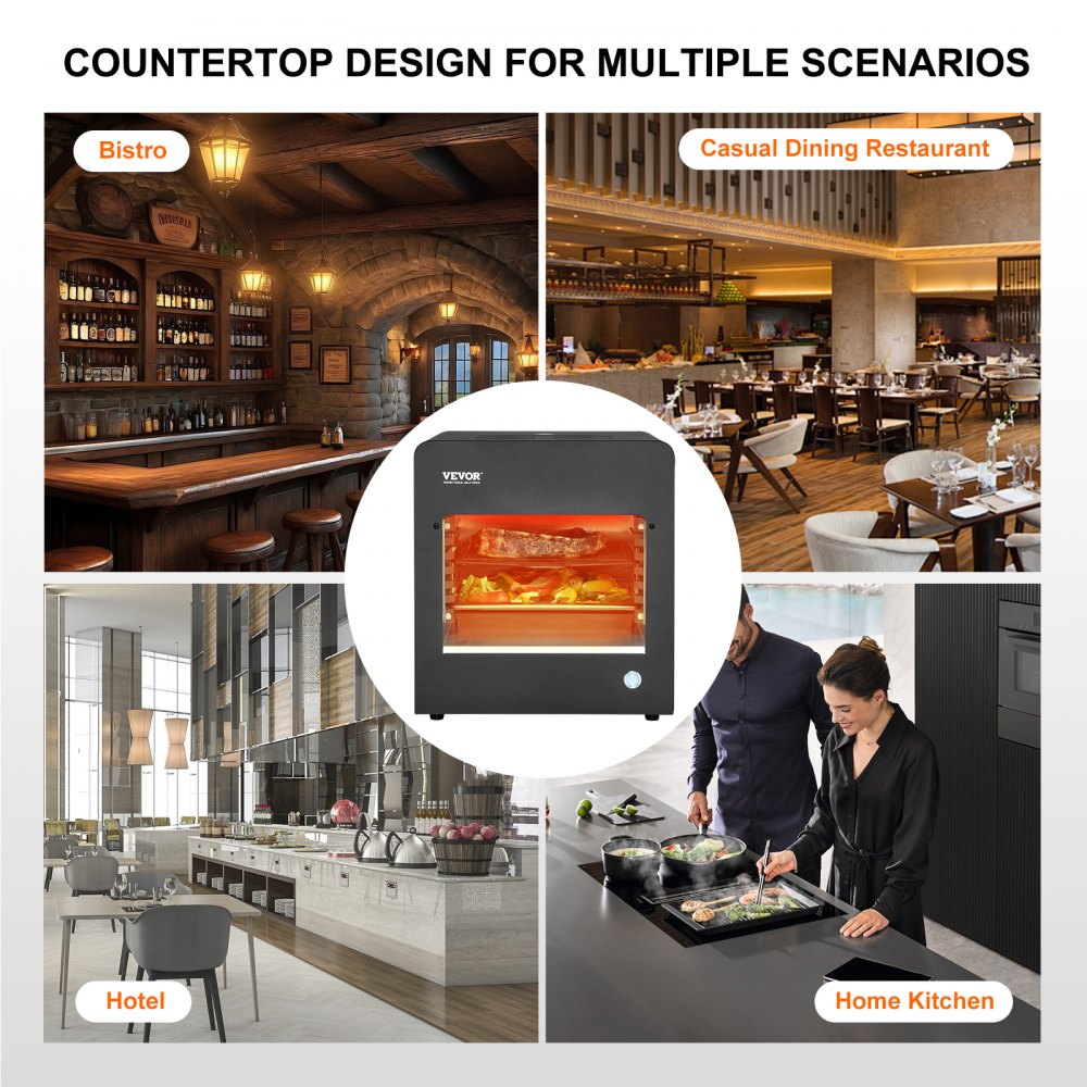 The VEVOR Electric Steak Grill delivers restaurant-quality searing with high-efficiency infrared heating at 1800W, making it perfect for home kitchens. Designed for simple operation, this smokeless broiler features adjustable grill racks to accommodate different food sizes and thicknesses. Its compact countertop design saves space while providing powerful cooking performance. Crafted from durable stainless steel, it’s easy to clean and set up, making steak nights at home faster, tastier, and more convenient than ever.