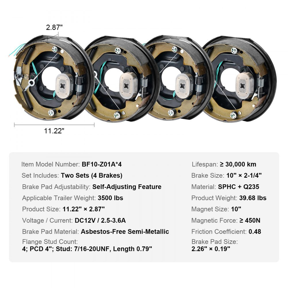 Upgrade your trailer braking system with this reliable VEVOR Electric Trailer Brake Assembly Kit. Designed for trailers with a 3500 lbs axle, this kit includes two pairs of high-quality self-adjusting electric brakes for enhanced safety and performance.