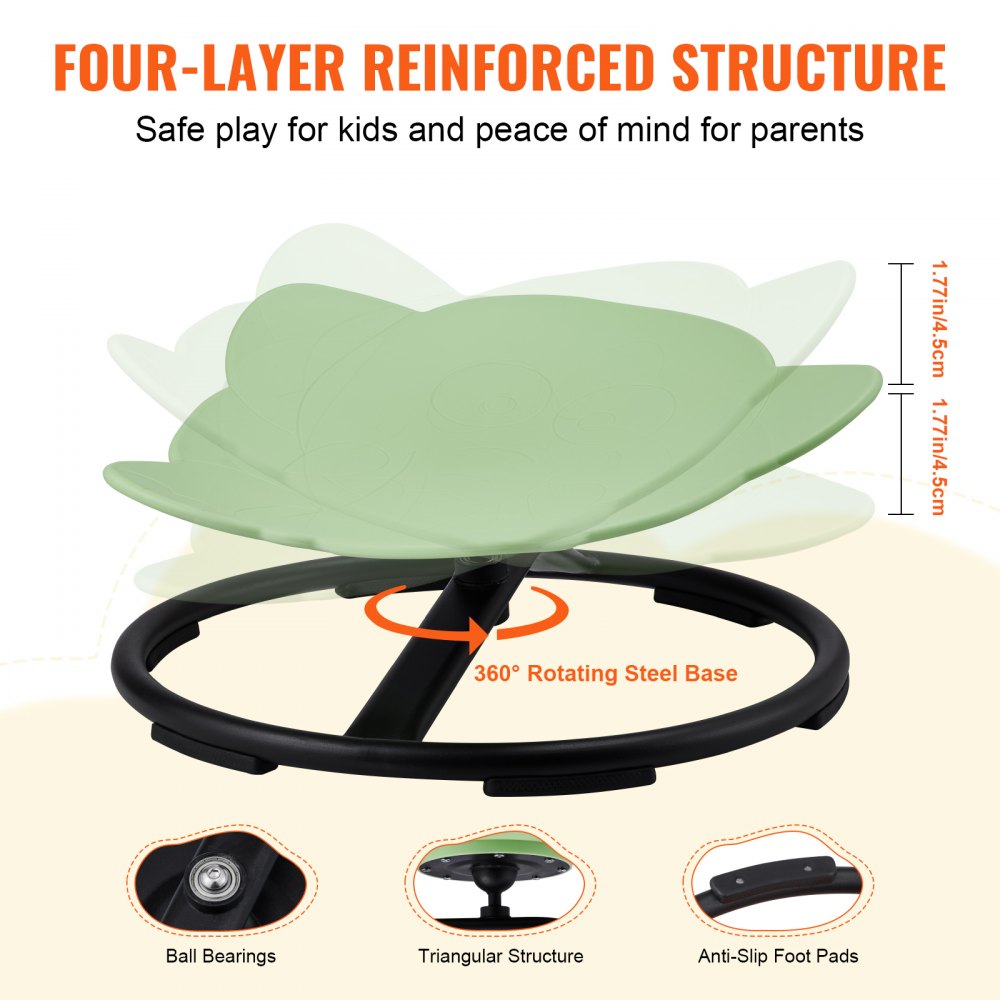 Add fun and functionality to your child’s space with the VEVOR Elephant Kids Spinning Chair, designed for ages 3–12 years. Featuring a 360° swivel design, this sensory swivel chair promotes active movement while providing comfort and stability. The sturdy elephant-shaped structure is made from durable materials, supporting up to 220 lbs (100 kg). With easy assembly and a playful green color, it's a perfect choice for sensory training and recreational use in any environment.