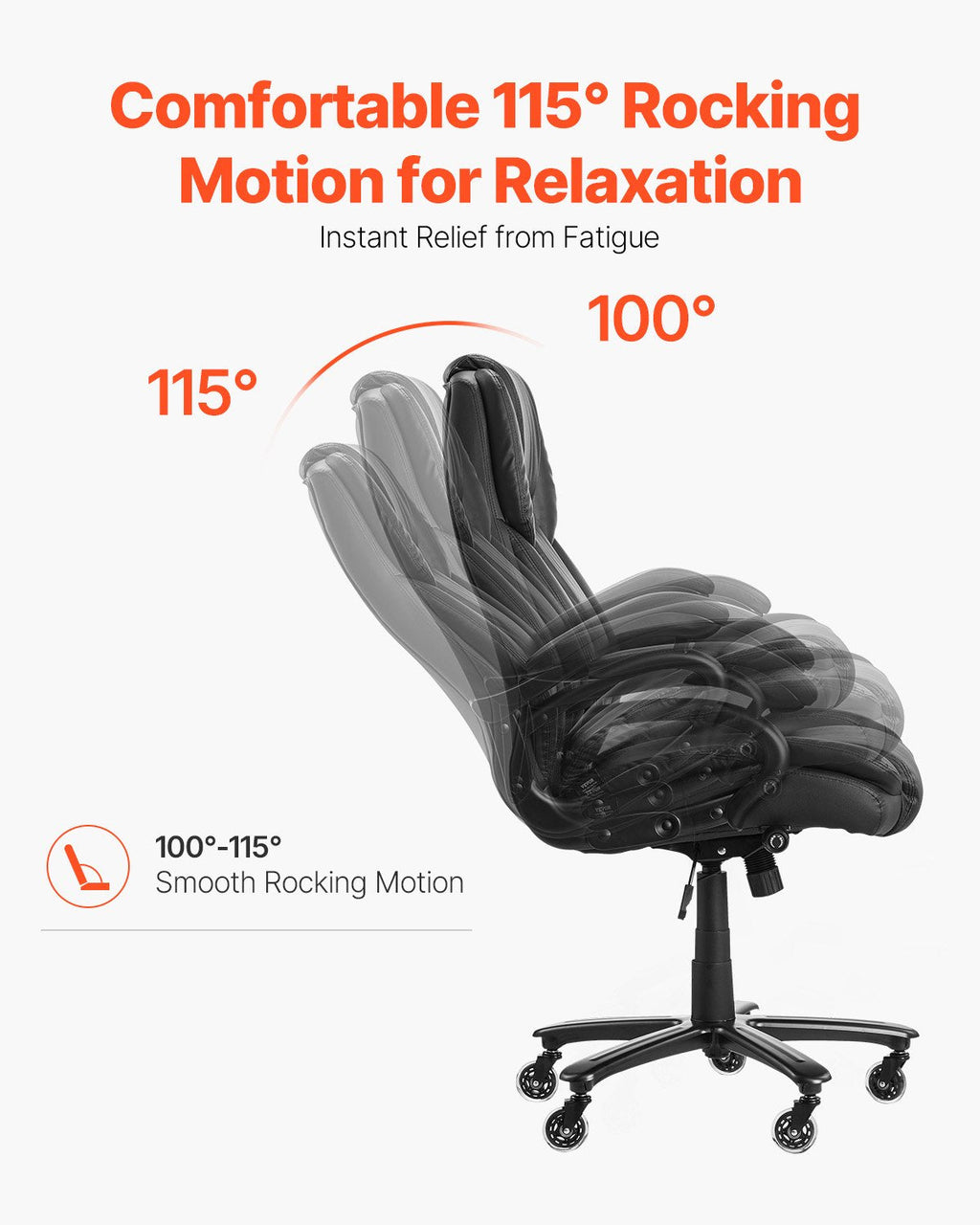 Experience unparalleled comfort and support with the VEVOR Executive Chair, designed for long hours of work or relaxation. This high-back office chair offers adjustable lumbar support with a knob-control feature, allowing you to fine-tune your comfort. Its ergonomic design and sturdy construction ensure lasting durability, while the premium PU leather upholstery adds a touch of elegance to your workspace. With a 500 lbs weight capacity and a smooth reclining function, this chair provides an optimal sitting experience. Enjoy smooth mobility with rubber casters and effortless height adjustments, making it a perfect choice for any office or home environment.