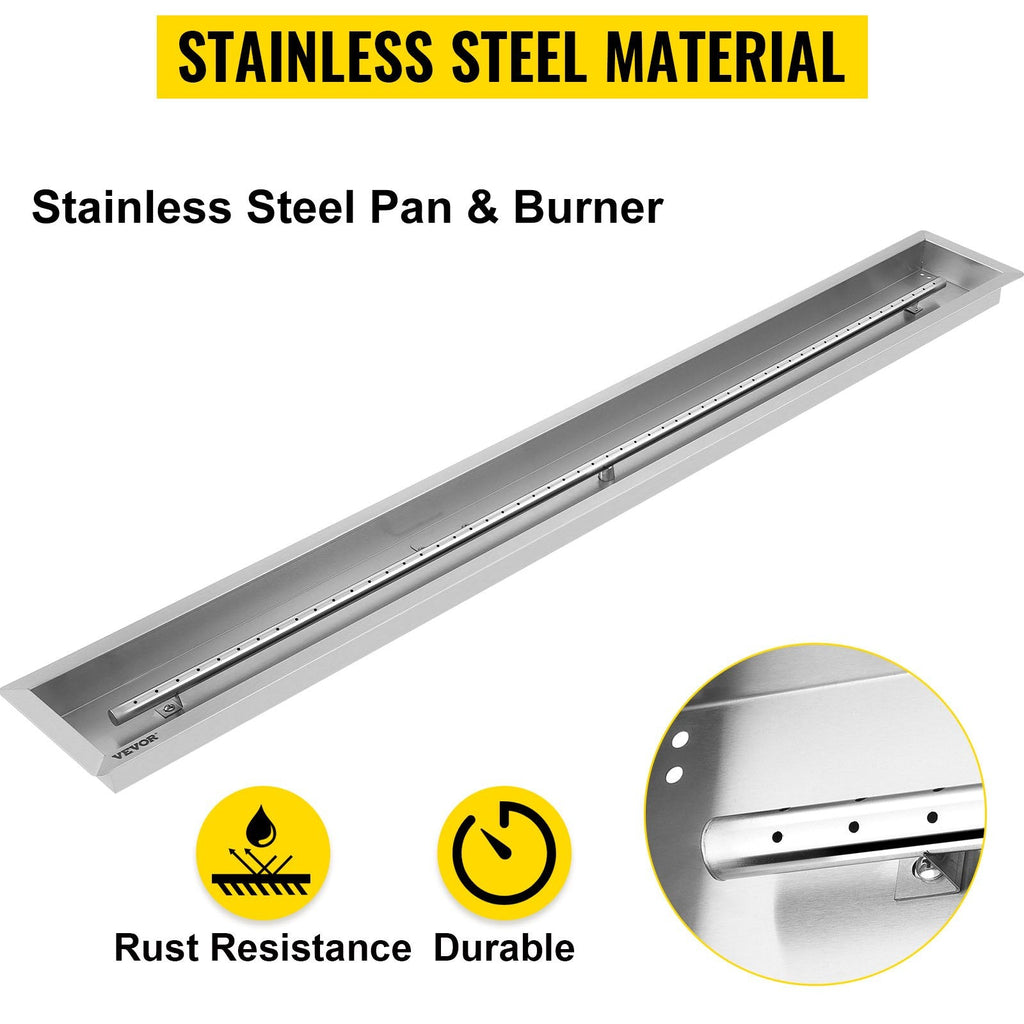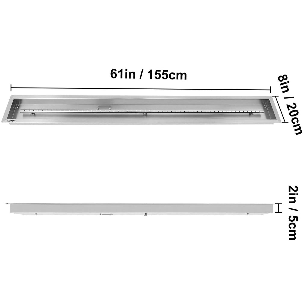 Create an eye-catching focal point in your outdoor space with the VEVOR Linear Trough Fire Pit Pan. Measuring 61 x 8 inches, this sleek fire feature is constructed from durable stainless steel for long-lasting performance. The built-in burner delivers an impressive 110,000 BTUs, providing powerful, efficient flames for warmth and ambiance. Compatible with both propane and natural gas, this fire pit pan is perfect for patios, backyards, and other outdoor settings.