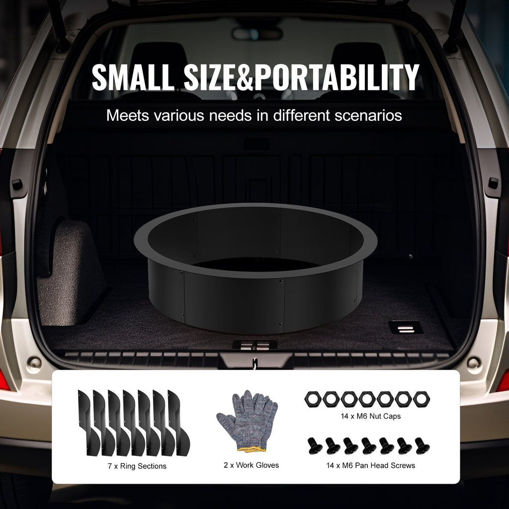 Transform your backyard into a cozy retreat with the VEVOR 35" Fire Pit Ring. With a 31-inch inner diameter, this fire pit liner is perfect for creating intimate campfires and enhancing your outdoor ambiance. Made from high-quality Q235 carbon steel and coated with a high-temperature-resistant finish, it ensures durability and resistance to extreme heat. Its 7-section design allows for quick and easy assembly, making it ideal for DIY fire pit projects. Whether you're hosting a gathering or enjoying a quiet evening, this fire pit ring offers both style and practicality.