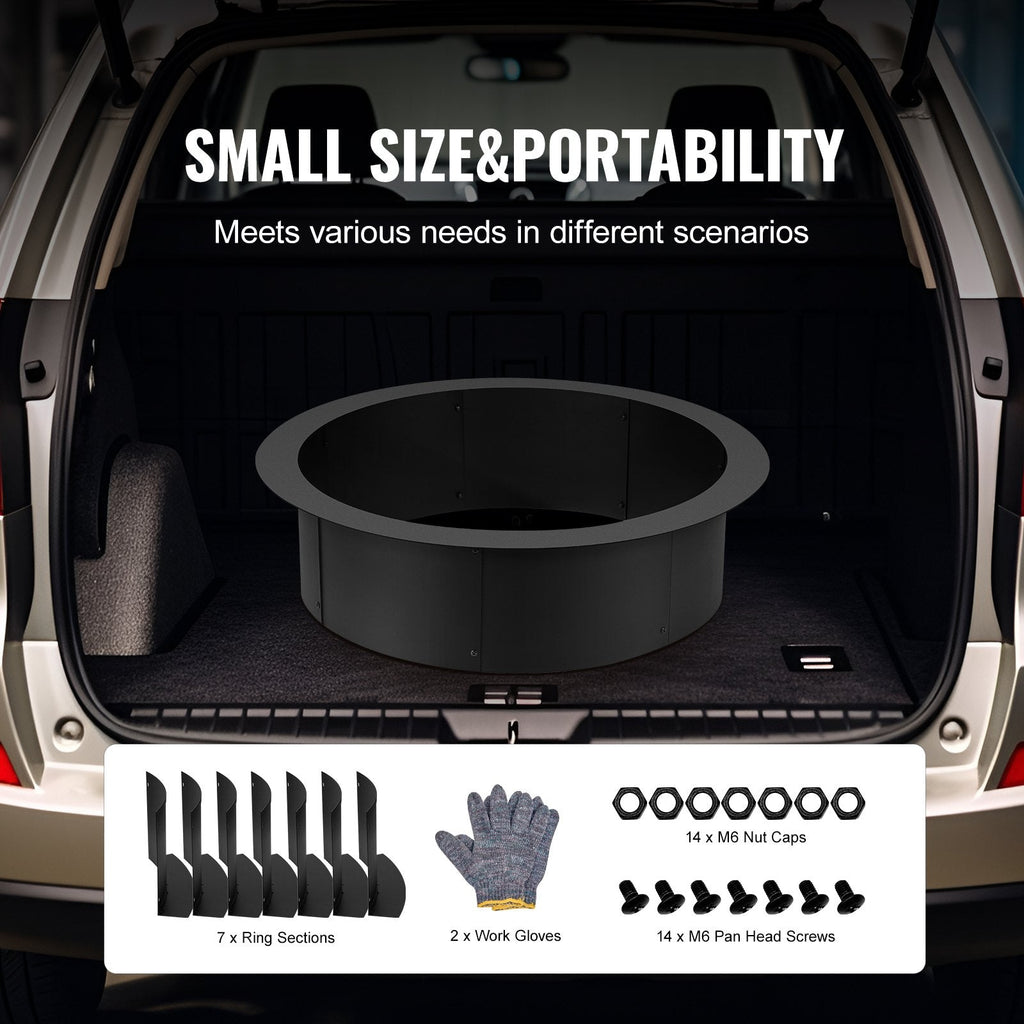 Create the ultimate outdoor gathering space with the VEVOR 36" Fire Pit Ring. Crafted from durable Q235 carbon steel and coated with high-temperature-resistant black finish, this fire ring is designed to withstand intense heat and long-term outdoor use. Its 36-inch outer diameter and 30-inch inner diameter provide ample space for roaring campfires, while the seven-section design ensures quick and easy assembly. Whether you're building a permanent fire pit or using it as a portable liner, this fire ring adds a rustic and reliable centerpiece to your backyard, campsite, or cabin.