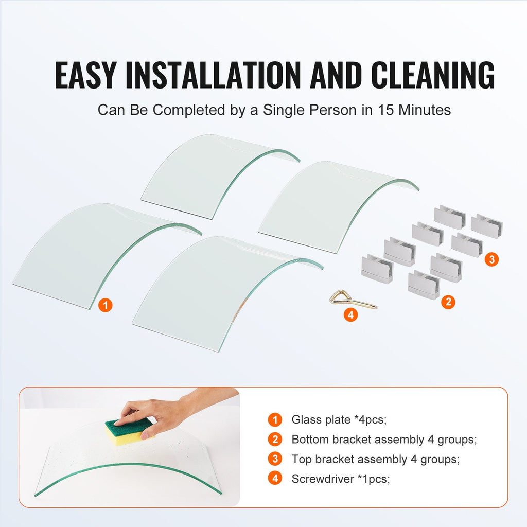 The VEVOR 26 x 26 x 6 inch Round Fire Pit Wind Guard offers an ideal solution for maintaining a steady flame outdoors. Made from 1/4-inch thick clear tempered glass and supported by sturdy aluminum alloy brackets, this flame guard protects your fire pit from wind interference while preserving its elegant appearance. It’s designed to fit propane and gas fire tables, providing safety, improved flame performance, and a modern aesthetic for your patio, garden, or outdoor lounge.