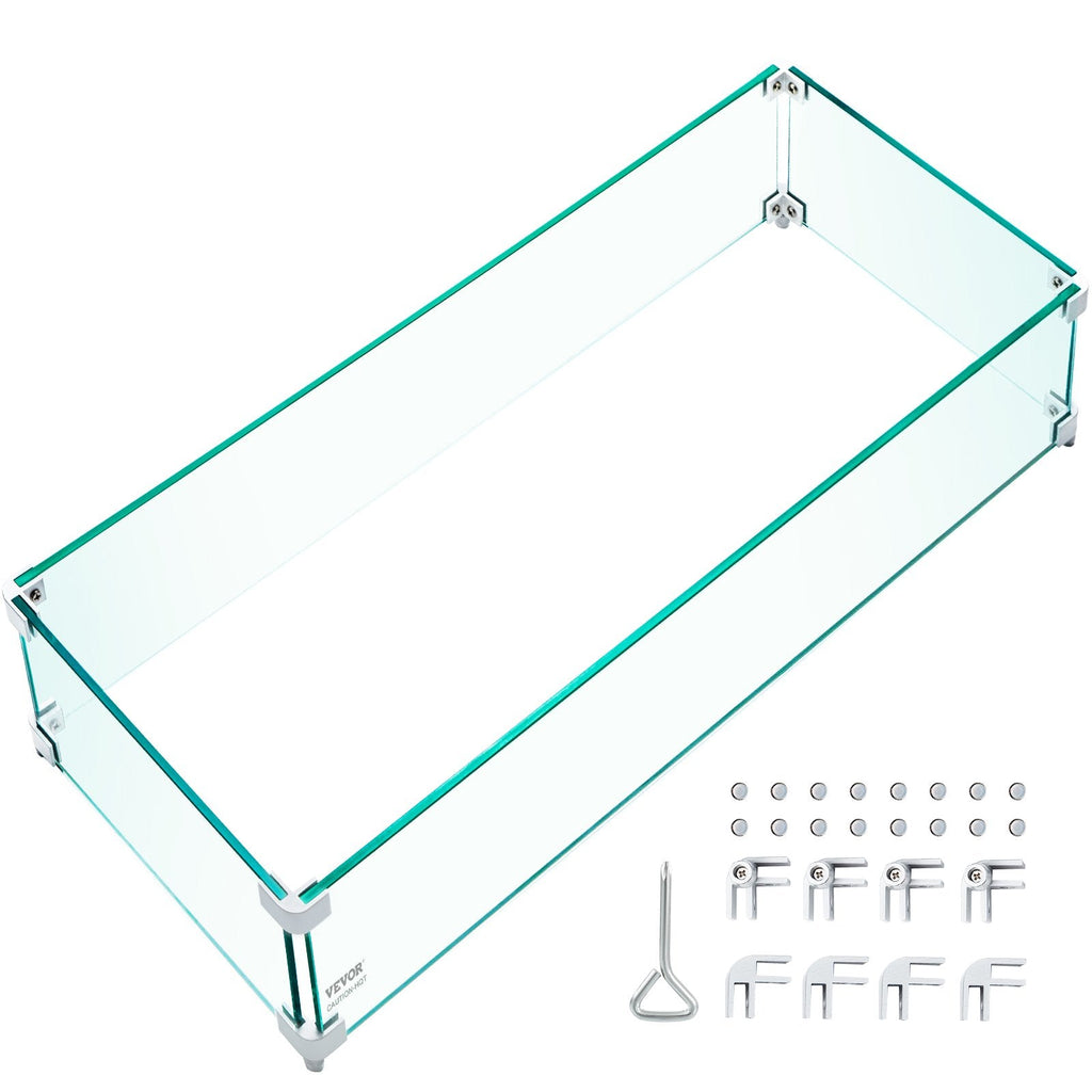 The VEVOR Fire Pit Wind Guard enhances your outdoor fire experience by providing a protective flame barrier that improves flame stability and safety. Designed to fit fire tables with an oblong burner layout, this 29 x 13 x 6 inch glass shield is crafted from 0.3" thick clear tempered glass, combining durability with modern aesthetics. The guard includes sturdy aluminum alloy brackets and non-slip feet for a stable setup on propane or gas fire pits. Its sleek, transparent design maintains a clean look while protecting your flames from wind and errant contact.