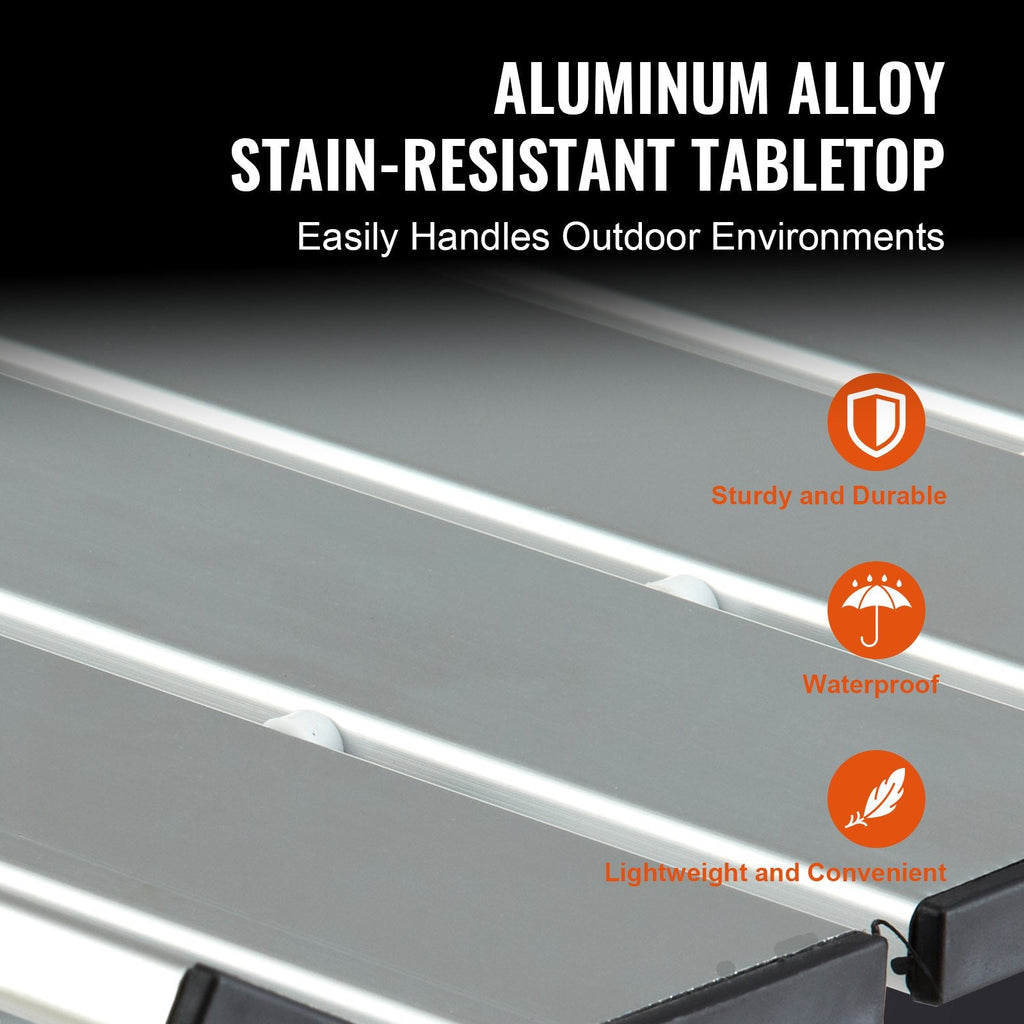 The VEVOR Folding Camping Table is the perfect portable solution for all your outdoor activities. Whether you’re cooking, picnicking, or traveling, this lightweight and ultra-compact table is easy to carry and set up. Crafted with a durable aluminum alloy tabletop and a reinforced steel pipe frame, it ensures stability and strength while remaining lightweight. Its stain-resistant surface makes cleanup a breeze, while the 24x16 inch size is perfect for various tasks. Whether you're at the beach, on a camping trip, or at a picnic, this folding table offers practicality and convenience wherever you go.
