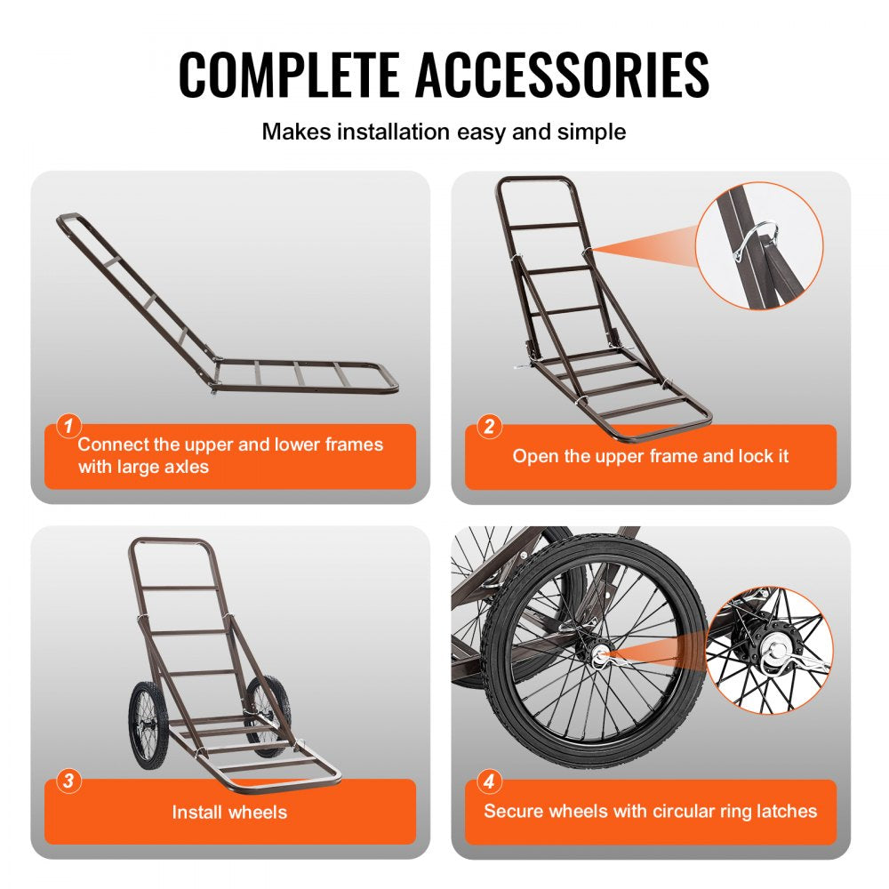 The VEVOR Folding Deer Cart Game Hauler is a versatile utility gear dolly designed to handle heavy loads with ease. Capable of carrying up to 300 lbs, it features solid construction, high load-bearing tires, and a stable triangular structure for maximum stability. This folding cart is ideal for hauling game, gear, or other large items with minimal effort. Its easy-fold design allows for convenient storage and transport, making it a must-have for hunters, outdoors enthusiasts, or anyone needing reliable hauling equipment. Whether you're tackling rugged terrains or moving heavy gear, this cart is built to handle it all.