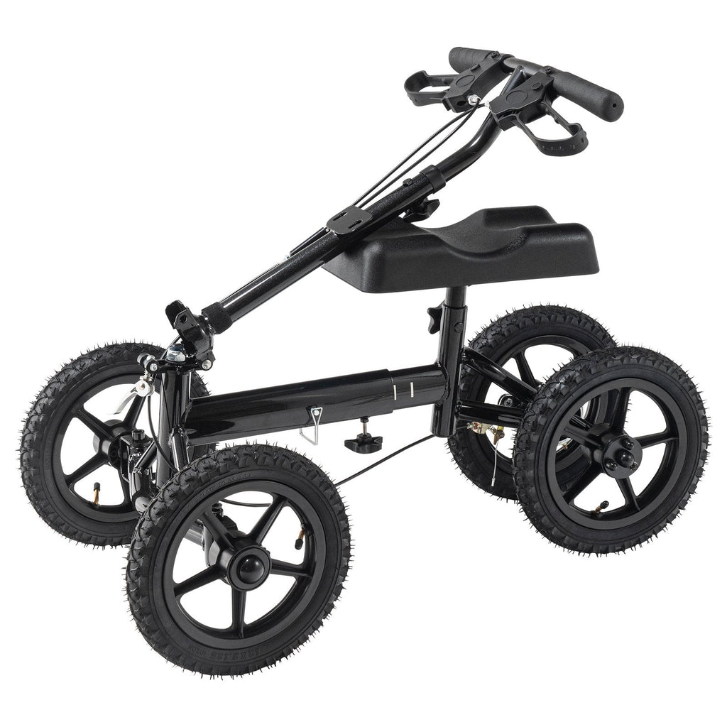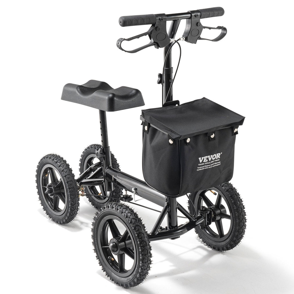 Regain your mobility with the VEVOR Folding Knee Scooter, a premium recovery solution for individuals with foot, ankle, or lower leg injuries. Designed with 12" textured all-terrain air-filled tires, this steerable knee walker glides smoothly over indoor and outdoor surfaces. The height-adjustable handlebar and knee pad ensure a customized fit, while the dual brake system offers reliable stopping power. Crafted from durable aluminum alloy, the scooter supports up to 350 lbs, making it both lightweight and strong—perfect for everyday use during your recovery journey.