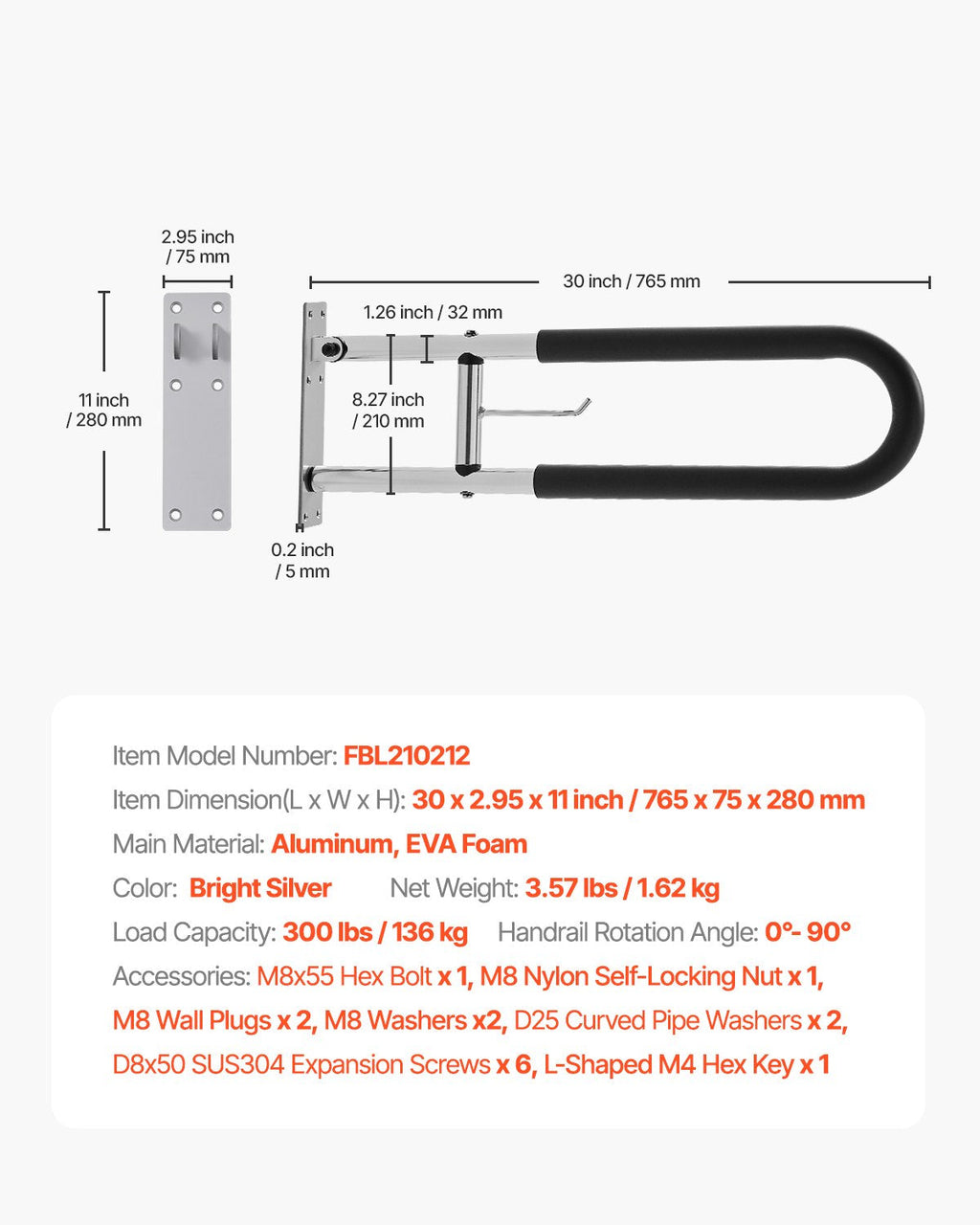The VEVOR Folding Toilet Safety Rail offers a practical solution for enhanced support and safety in the bathroom. Designed with a 300 lbs load capacity, it provides robust assistance when standing or sitting. The versatile handrails can rotate from 0° to 90° for easy customization. Featuring a built-in paper holder and easy installation, this stylish safety rail is perfect for seniors, people with mobility challenges, or anyone looking for extra support in the bathroom. Its compact design makes it a convenient addition to any bathroom setup.