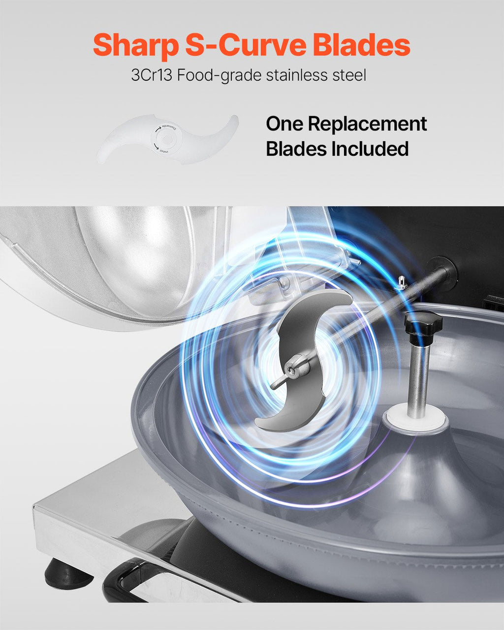 The VEVOR Food Processor 3000RPM is a versatile, high-powered kitchen tool designed to handle a variety of food prep tasks with ease. Featuring a 250W motor, this multi-function food processor can quickly chop, shred, slice, and mince a wide range of ingredients. With a durable stainless steel and ABS construction, it is built for long-lasting performance. Its 3000 RPM speed ensures fast and efficient food processing, making it an essential appliance for commercial kitchens or home chefs seeking quick meal prep. The food-grade materials ensure safety and quality for everyday use.