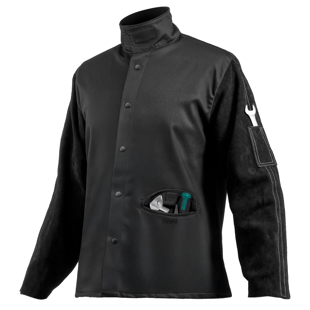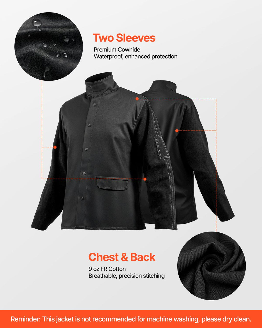 Stay protected in demanding work environments with the VEVOR FR Welding Jacket. Crafted from a premium blend of cowhide leather and 9 oz flame-resistant cotton, this jacket delivers reliable arc protection while offering comfort and durability. Perfect for professional welders and DIY enthusiasts, it’s built to handle sparks, heat, and heavy-duty tasks with ease.