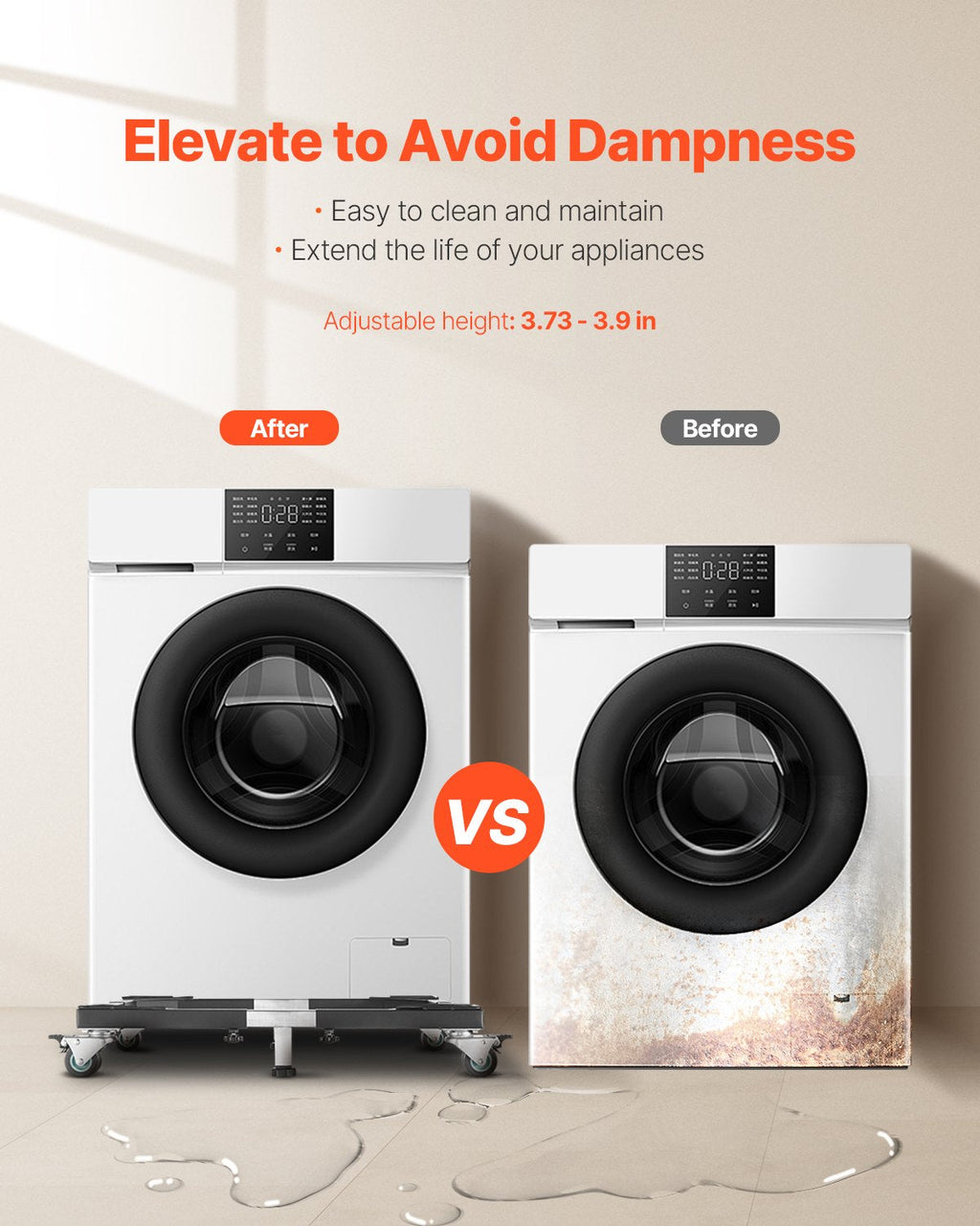 The VEVOR Fridge Stand Mobile Base provides sturdy support and convenient mobility for your large appliances. With a weight capacity of up to 1200 lbs (544 kg), this adjustable furniture dolly is perfect for refrigerators, washing machines, and other heavy furniture. The 8 swivel wheels, 4 of which feature brakes, ensure smooth and secure movement, while the adjustable size allows it to fit appliances ranging from 23 to 36.6 inches in width. Whether you’re cleaning, organizing, or moving heavy items, this versatile mobile base is a practical home helper.