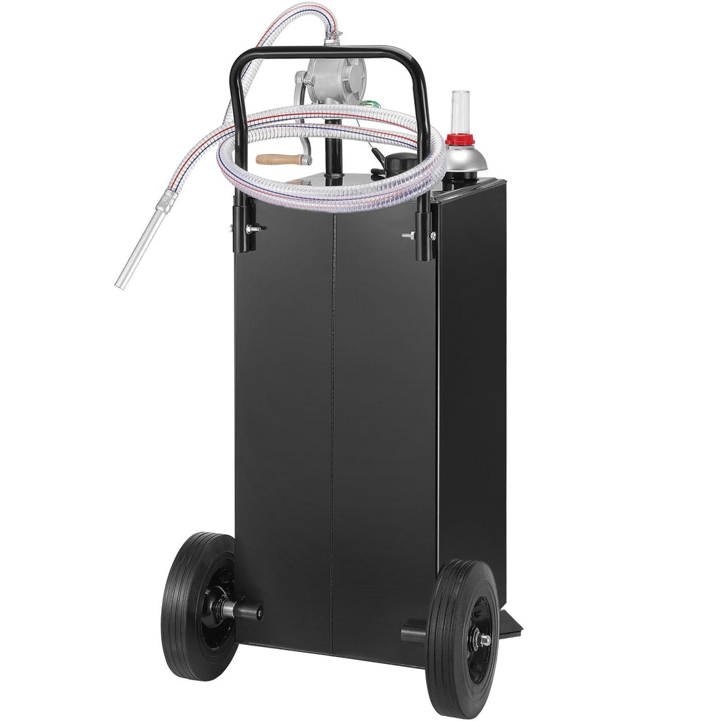 Fuel up with ease using the VEVOR 30 Gallon Fuel Caddy in sleek black. Built from high-strength 201 stainless steel, this mobile fuel storage tank is ideal for storing and transferring gasoline, diesel, or kerosene. Designed with a sturdy two-wheel base and a manual rotary pump, this fuel caddy ensures safe and efficient fueling for vehicles, boats, lawn equipment, and more. Its 9.8 ft hose and two-way pump deliver versatile performance, while its large capacity minimizes refill frequency. A dependable solution for both residential and commercial use.