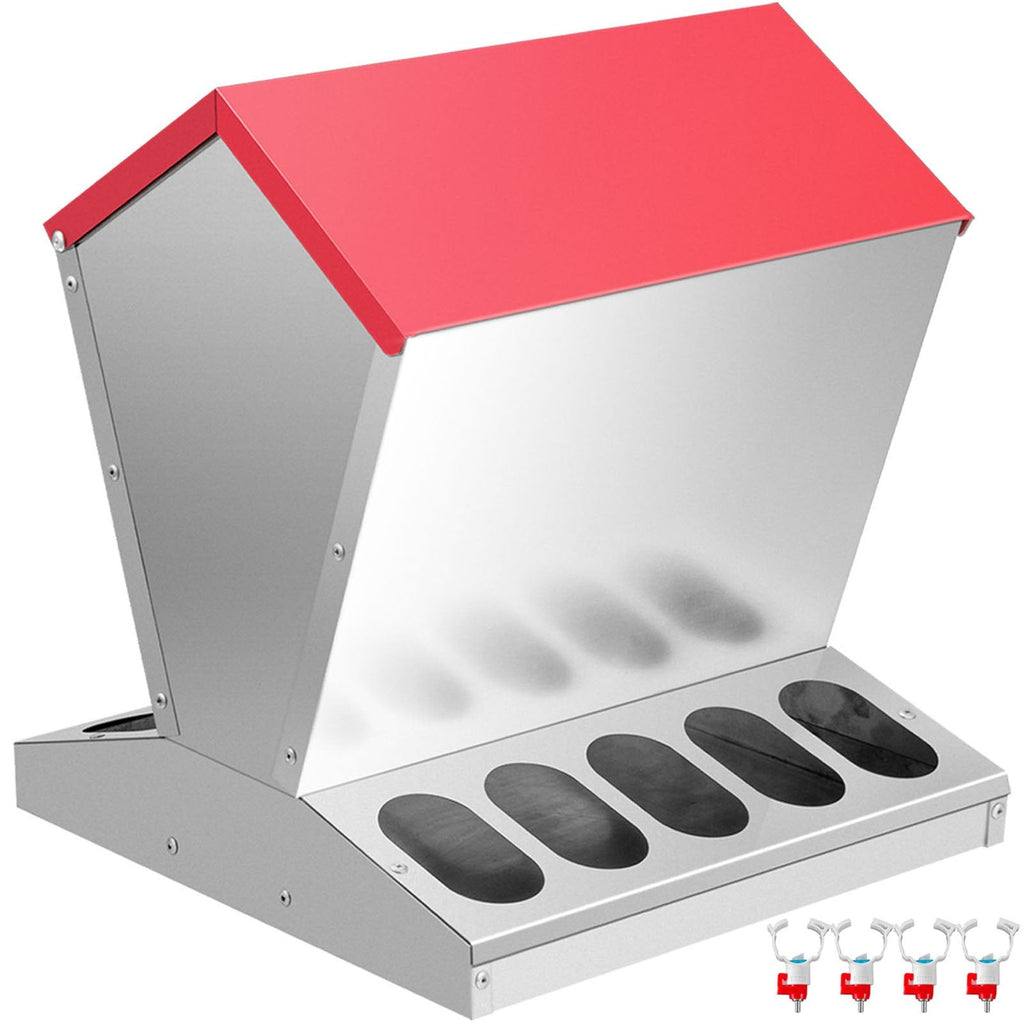 The VEVOR Galvanized Poultry Feeder is designed to efficiently hold up to 25 pounds of feed, making it ideal for up to 10 chickens. Measuring 11.75 x 11.75 x 15.75 inches, this feeder features a no-waste design and a protective lid to keep feed clean and dry. Made from durable galvanized steel, it offers long-lasting outdoor performance. Perfect for poultry enthusiasts, this automatic feeder streamlines feeding and reduces waste.