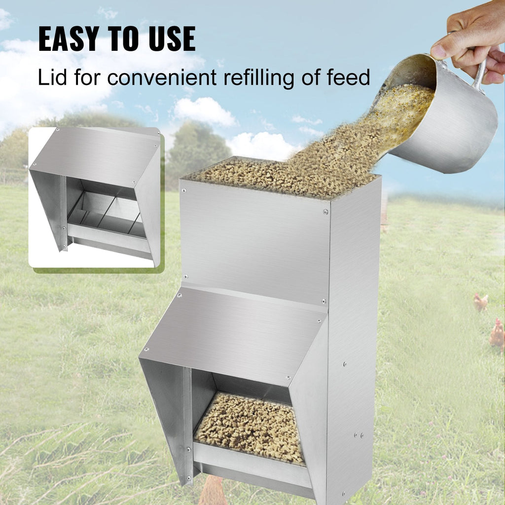 Protective Lid: Keeps feed safe from rain, pests, and debris