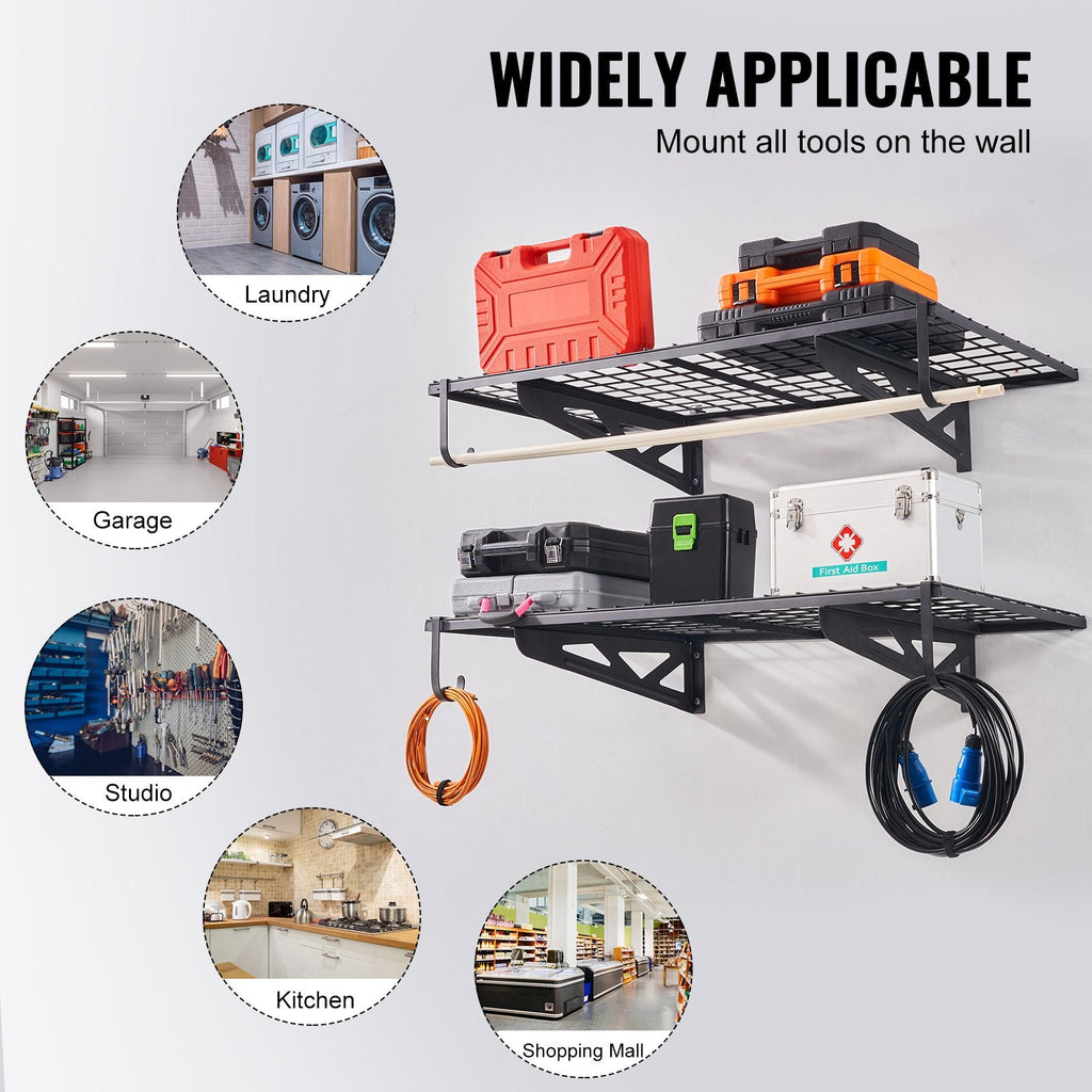 Maximize your storage space with the durable and practical VEVOR Garage Storage Shelving set. Featuring two sturdy wall-mounted shelves, each measuring 4 x 2 feet, these heavy-duty racks are perfect for organizing your garage, workshop, shed, or any storage area. With a combined load capacity of 502 lbs, these shelves offer reliable support for your tools, equipment, and supplies.