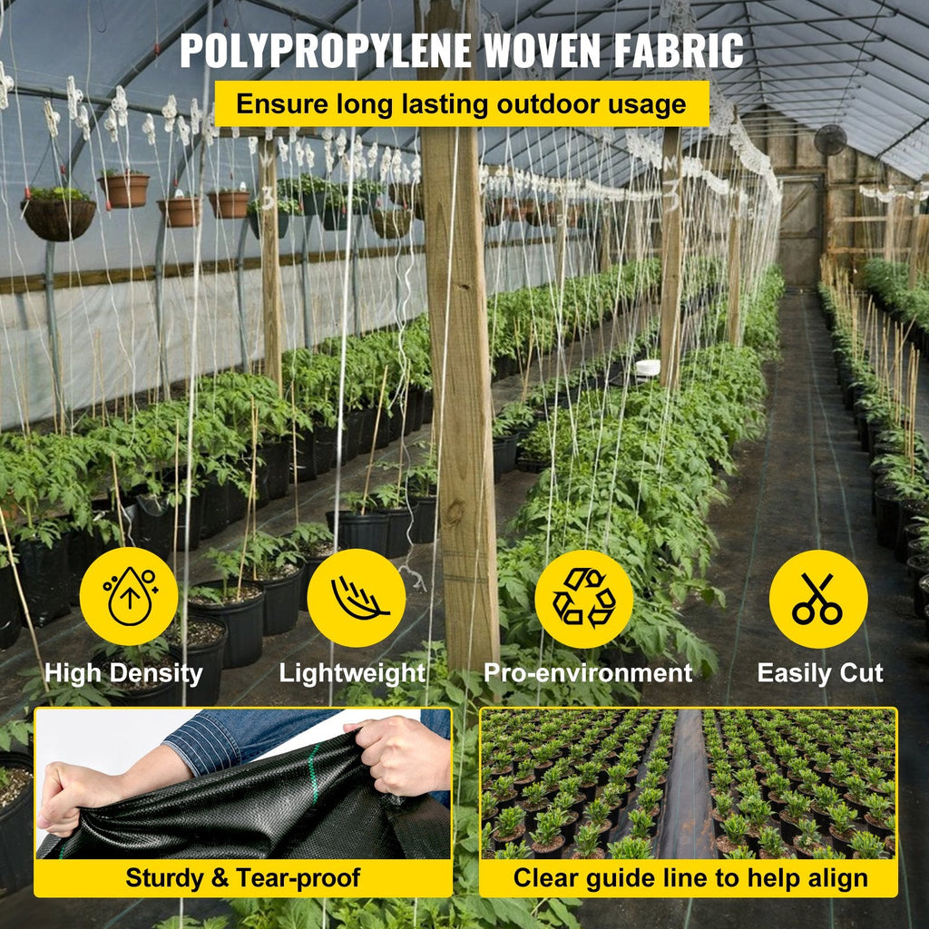 Maintain a pristine garden or landscape with the VEVOR Garden Weed Barrier Fabric. This heavy-duty woven geotextile fabric weighs 3.24 oz per square yard, providing reliable protection against unwanted weed growth while allowing water and nutrients to penetrate the soil. Measuring a generous 3 x 300 feet, it offers extensive coverage for large garden beds, pathways, or landscaping projects.