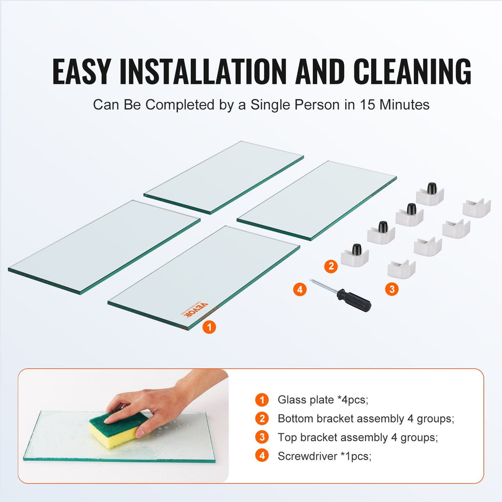 Material: Clear Tempered Glass with Aluminum Brackets