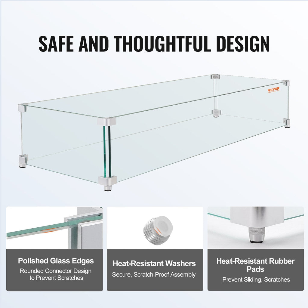 Protect your outdoor fire pit and enhance its durability with the VEVOR Gas Fire Pit Wind Guard. Designed for square fire tables, this high-quality wind guard features a clear, tempered glass panel with a hard corner bracket and feet for added stability. Measuring 23.5 x 7.5 x 6.5 inches, this wind guard is crafted with durable, 0.31-inch thick tempered glass and aluminum for both safety and wind resistance. It’s easy to install and maintain, making it the perfect addition to any fire pit setup. Ideal for a wide range of outdoor settings, this wind guard ensures that your fire pit remains safe, stable, and beautiful, even in windy conditions.