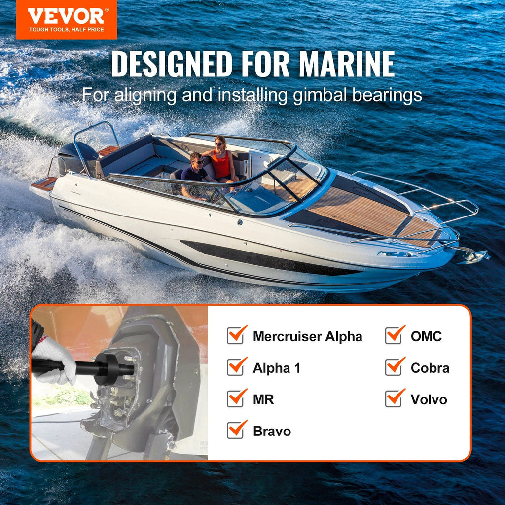 The VEVOR Gimbal Bearing Alignment and Install Kit is a heavy-duty toolset engineered for accurate engine alignment and secure gimbal bearing installation. Built for reliability, this kit is compatible with Mercruiser Alpha, Alpha 1, MR, Bravo, OMC, Cobra, and Volvo marine drives.