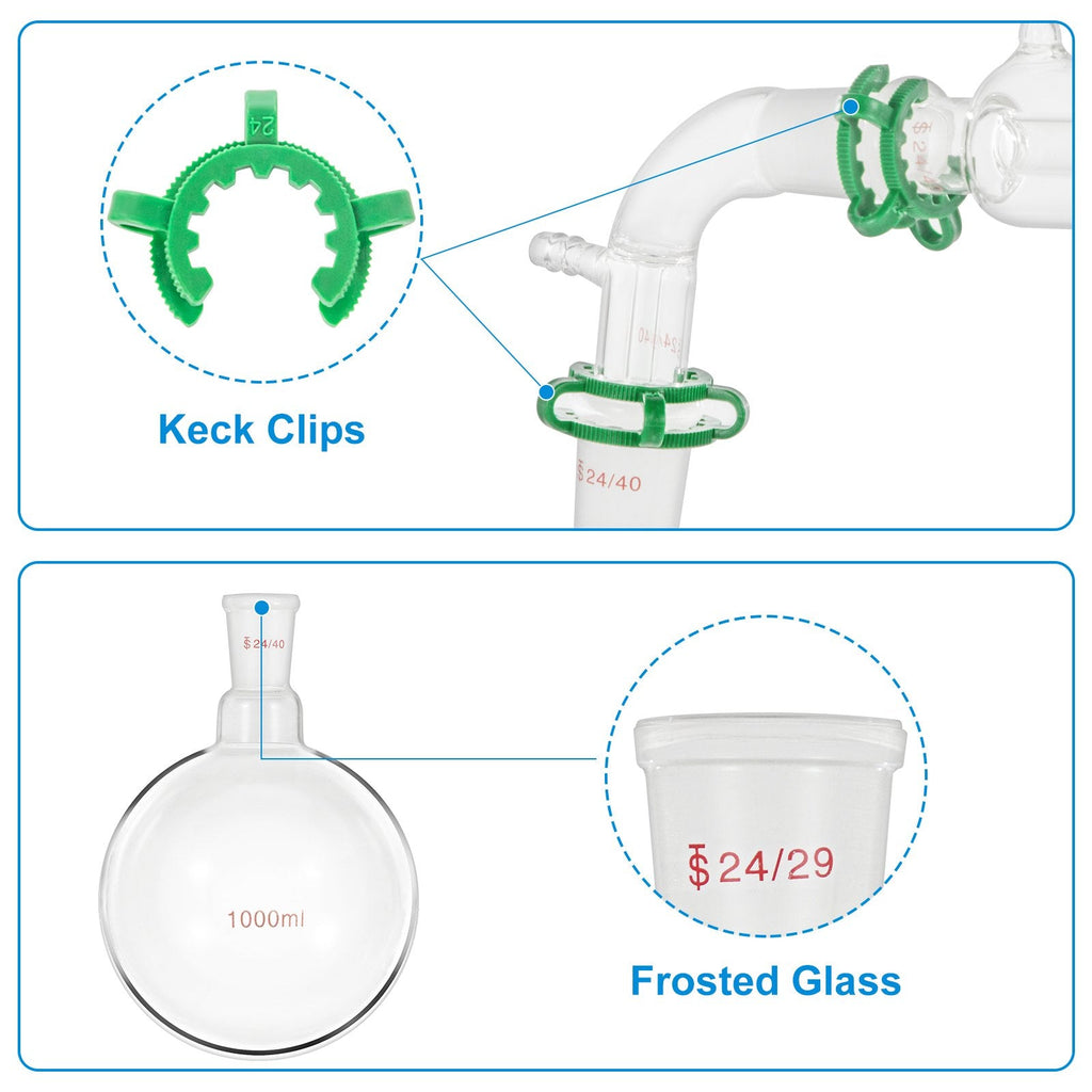 Standard 24/40 Joints: Interchangeable joint system allows secure connections and compatibility with other lab equipment