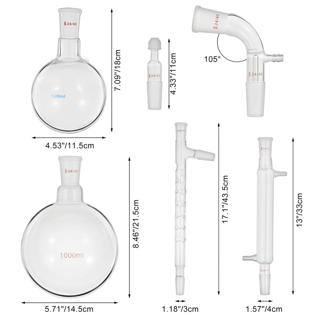 Complete 13-Piece Set: Includes all essential glassware for distillation, purification, and separation experiments