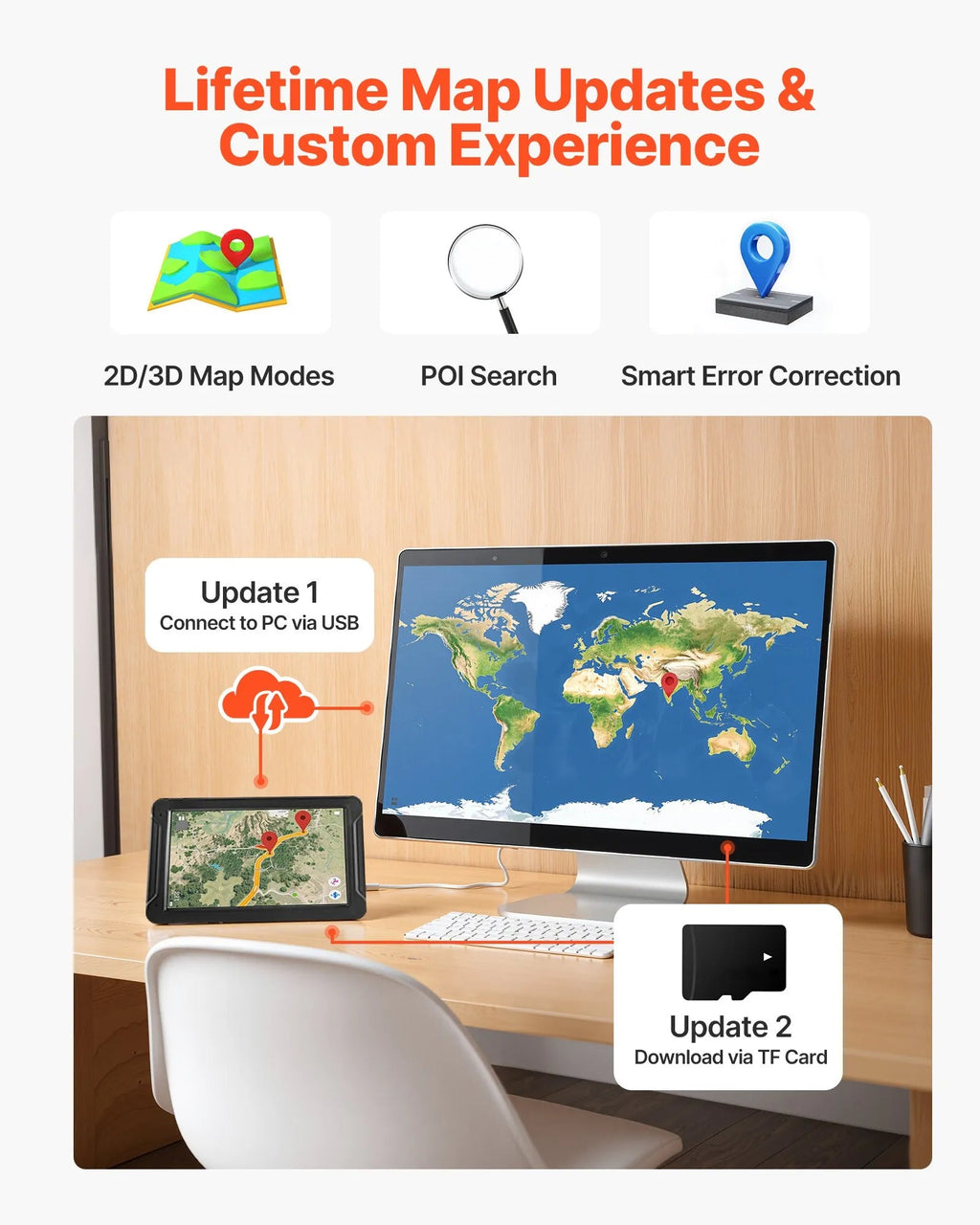 Customizable Settings: Supports zip code, address, coordinates, favorites, and POI search. Includes route planning options, GPS/map time display, FM transmission to car stereo (not FM radio), and smart voice guidance for speed and lane alerts.