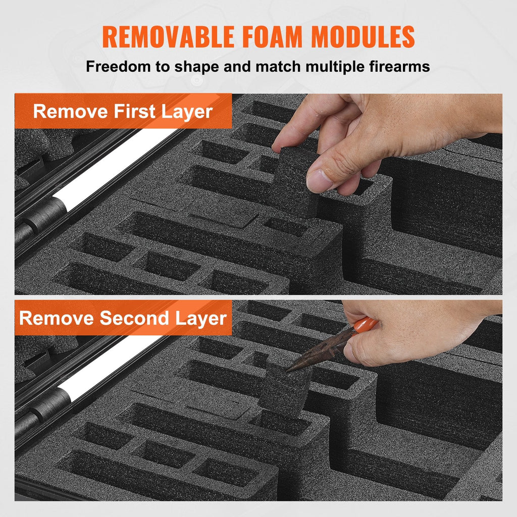 Compact Storage Space: Designed to hold up to 5 pistols with multiple layers of customizable PU foam for each firearm.