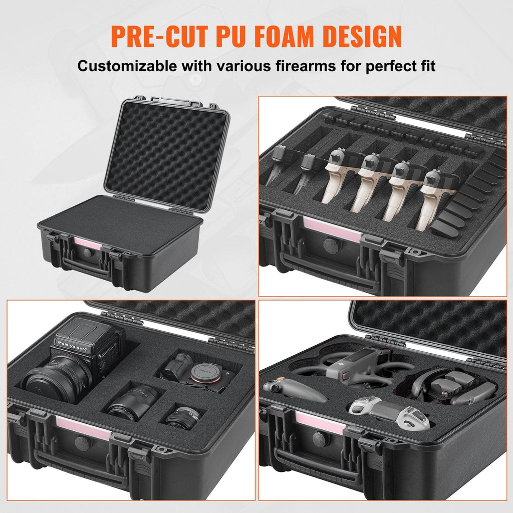 Ensure your firearms are safely stored with the VEVOR Hard Pistol Case, designed to securely hold up to 6 pistols. Featuring pre-cut PU foam, this case provides custom storage for each firearm, keeping them organized and protected. With an IP67 waterproof and dustproof rating, it offers superior protection against environmental elements. The TSA-compliant design allows for secure travel, while the pressure relief valve and locking latches add an extra layer of security. Perfect for enthusiasts, professionals, or anyone in need of secure firearm storage.