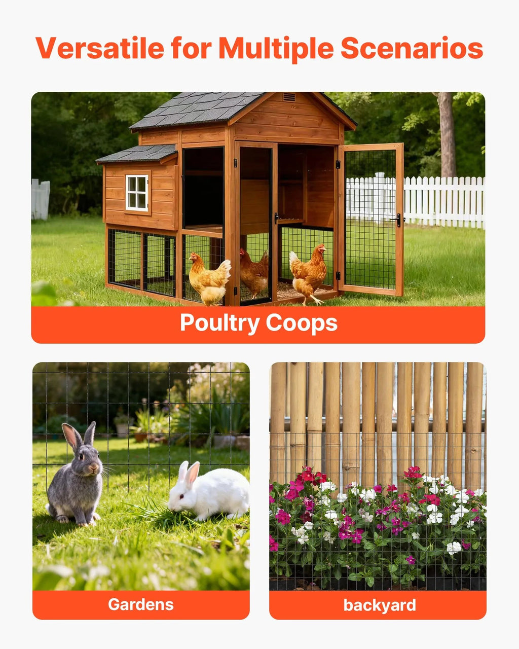 Experience reliable outdoor protection with the VEVOR 24" × 25 ft Hardware Cloth, engineered from heavy-duty 16-gauge galvanized steel and coated in weather-resistant black vinyl. The precise 2" × 3" welded mesh offers strong, stable coverage for gardens, animal enclosures, chicken coops, rabbit cages, and snake barriers. With reinforced welds, consistent sizing, and quick-install accessories included, this mesh roll is built for long-lasting durability and easy use.
