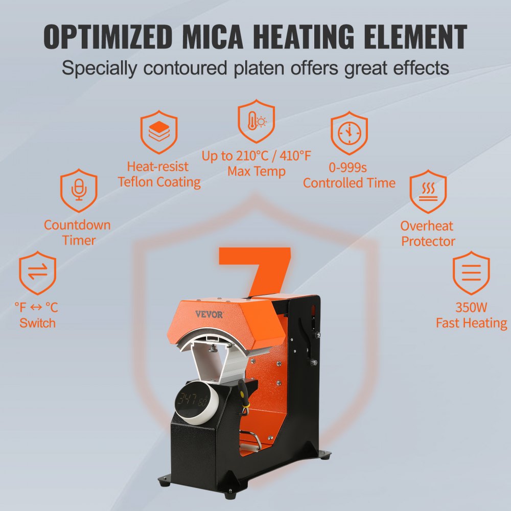 The VEVOR Hat Heat Press is a powerful and precise solution for sublimation and heat transfer projects on caps and hats. Equipped with three interchangeable heating pads, it adapts easily to different hat sizes and styles. Featuring an automatic pressure adjustment system and a secure auto-release design, this press minimizes effort while maximizing safety and accuracy. With a wide temperature range of 104–410°F and a generous time setting up to 999 seconds, it's perfect for both commercial production and home crafting. The Teflon-coated heating plate ensures even heat distribution without scorching your materials.