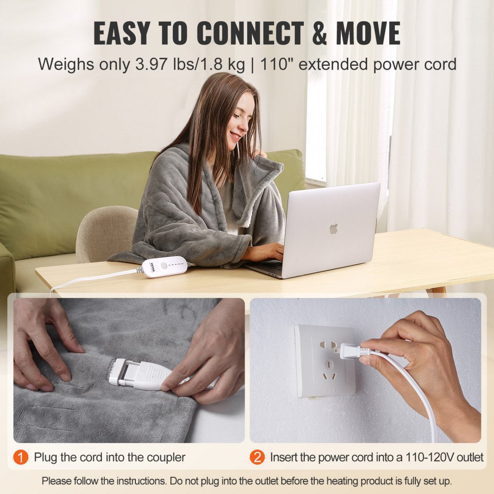 Stay cozy and warm wherever you go with the VEVOR Heated Blanket Electric Throw. Featuring ultra-soft flannel and plush sherpa layers, this twin-size electric blanket offers gentle warmth with five adjustable heat settings. Perfect for chilly evenings on the sofa, it includes a convenient 3-hour auto-off timer for safety and peace of mind.