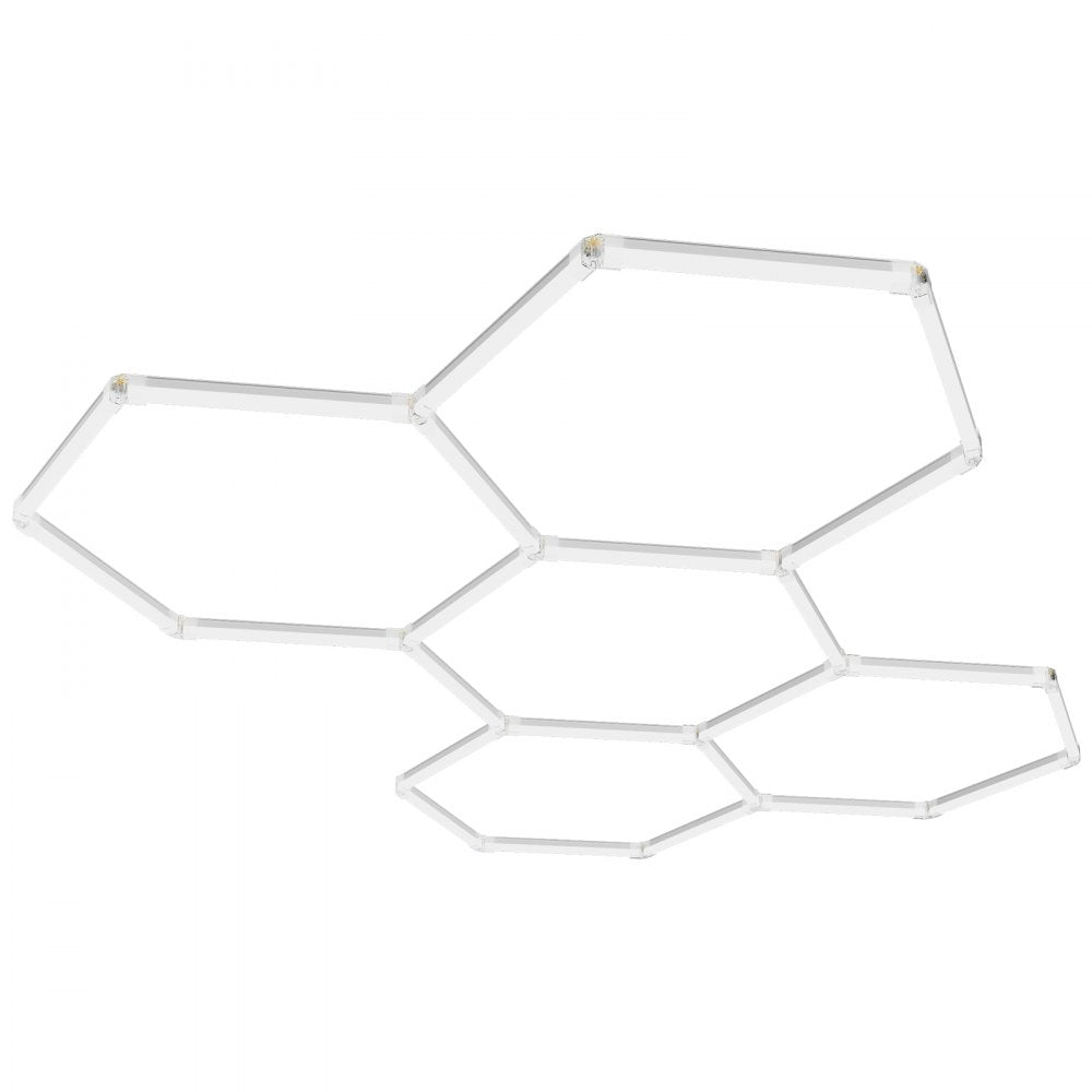 Illuminate your workspace like never before with the VEVOR Hexagon Garage Light. Delivering a brilliant 26,400 lumens with a cool white 6500K color temperature, this 5-grid honeycomb LED ceiling light provides even, shadow-free lighting across large areas. Designed with 25 light tubes in a modular honeycomb layout, this lighting system is perfect for garages, studios, gyms, and showrooms. Its flexible DIY design allows for easy customization and installation, while its durable construction operates reliably in extreme temperatures. Ideal for both function and style, this modern LED light system enhances visibility and aesthetics simultaneously.