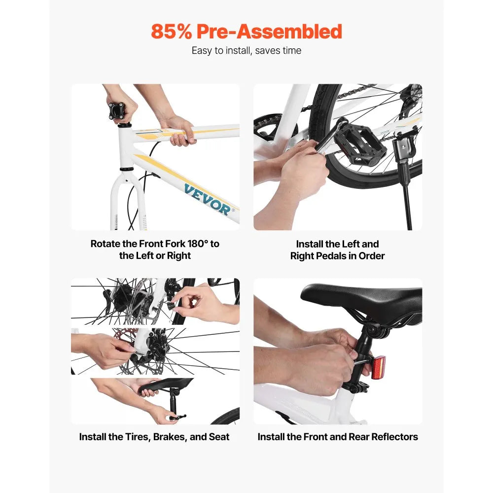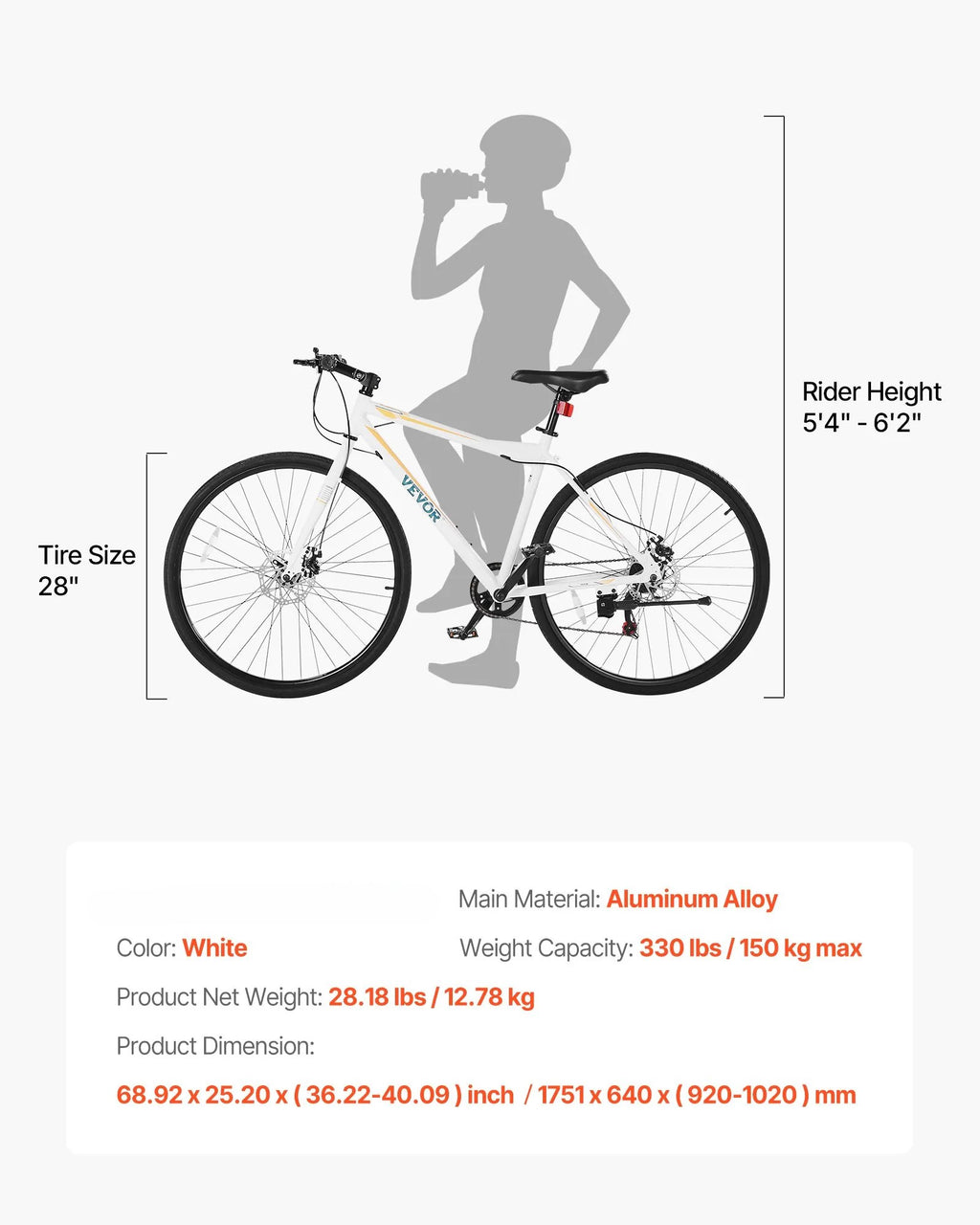 Designed for daily commuting and weekend rides, this VEVOR hybrid bike blends comfort, control, and durability in a clean, modern design. The lightweight aluminum frame offers excellent strength without unnecessary weight, making it easy to handle in city traffic or on longer rides. With a rider capacity of up to 330 lbs, it’s built to support a wide range of cyclists.