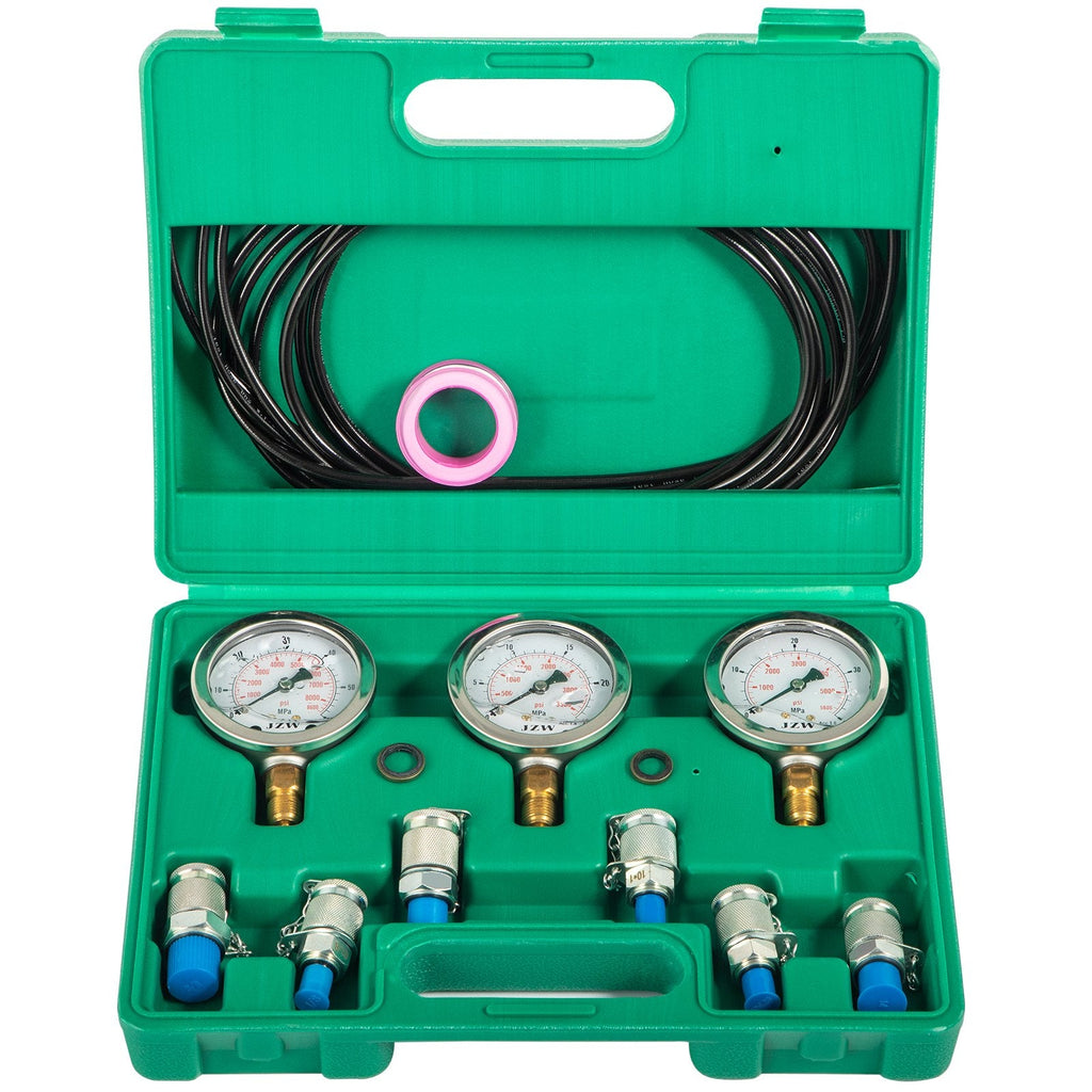 The VEVOR Hydraulic Pressure Test Kit is a durable, high-performance tool designed to accurately measure hydraulic pressure in various machinery applications. This kit includes three precision gauges with pressure ranges of 25MPa, 40MPa, and 60MPa, as well as six couplings for versatile compatibility. Constructed from high-quality 304 stainless steel, it ensures long-term durability even in tough environments. Perfect for use with excavators and construction equipment, this kit is an essential addition to any professional mechanic or technician’s toolkit. Its green finish also offers easy visibility and a sleek, professional look.