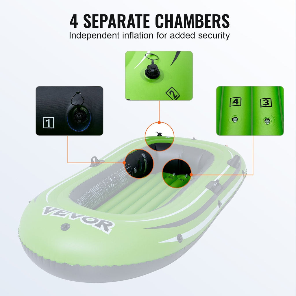 The VEVOR 2-Person Inflatable Fishing Boat is made from thickened PVC material for durability and safety. Designed for both adults and kids, it offers a spacious and comfortable ride with a 500 lb capacity. The boat comes equipped with 45.6-inch aluminum oars, a high-output pump, and fishing rod holders, ensuring an enjoyable and effortless experience. Perfect for recreational fishing, it’s ready out of the box and features a convenient Velcro bag for easy storage.