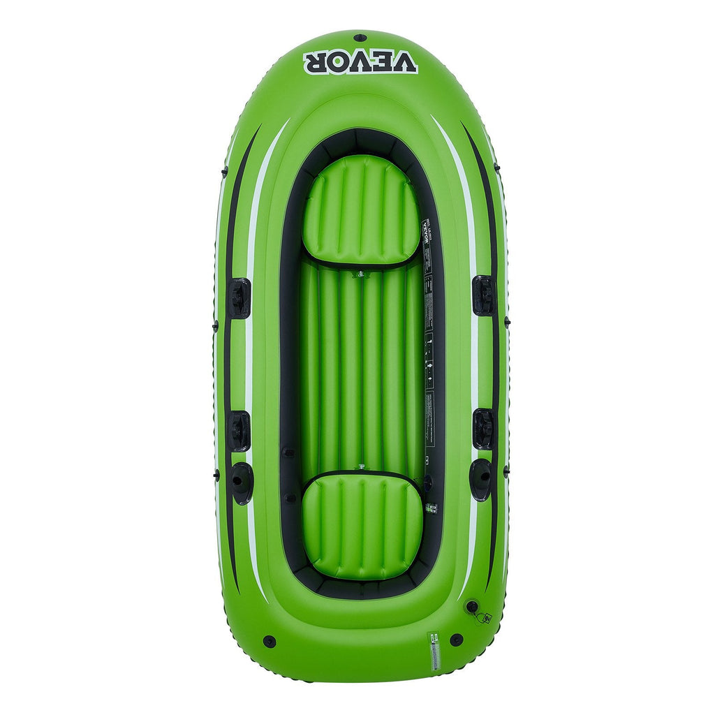 The VEVOR 3-Person Inflatable Fishing Boat is built for adventure with a thickened PVC structure offering exceptional durability and buoyancy. Designed to hold up to 750 lbs, this portable boat includes two inflatable seats, aluminum oars, fishing rod holders, and a high-output pump for quick inflation. Whether you're navigating calm lakes or planning a fishing weekend, this inflatable kayak ensures comfort, convenience, and safety for up to three people. Its compact design and included Velcro bag make transport and storage easy.