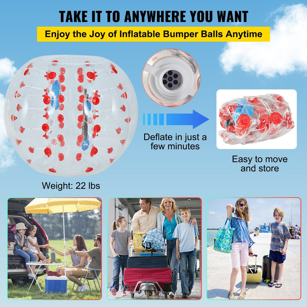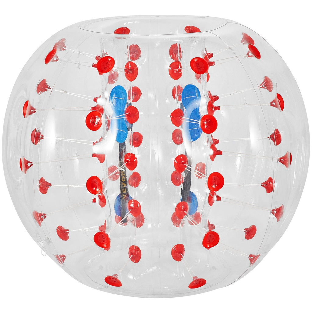 Get ready for action-packed fun with the VEVOR Inflatable Bumper Ball! Measuring 5 feet (1.5 meters) in diameter, this bubble ball is designed for energetic play, from backyard battles to bubble soccer matches. Crafted from thick, durable PVC material, it offers excellent resistance to wear and impact. The vibrant red dot pattern adds flair to your game while the quick 5-minute inflation ensures you're ready to roll in no time. Safe and exciting for both kids and adults, this bumper ball delivers hours of outdoor fun with bounce, tumble, and spin action in every game.
